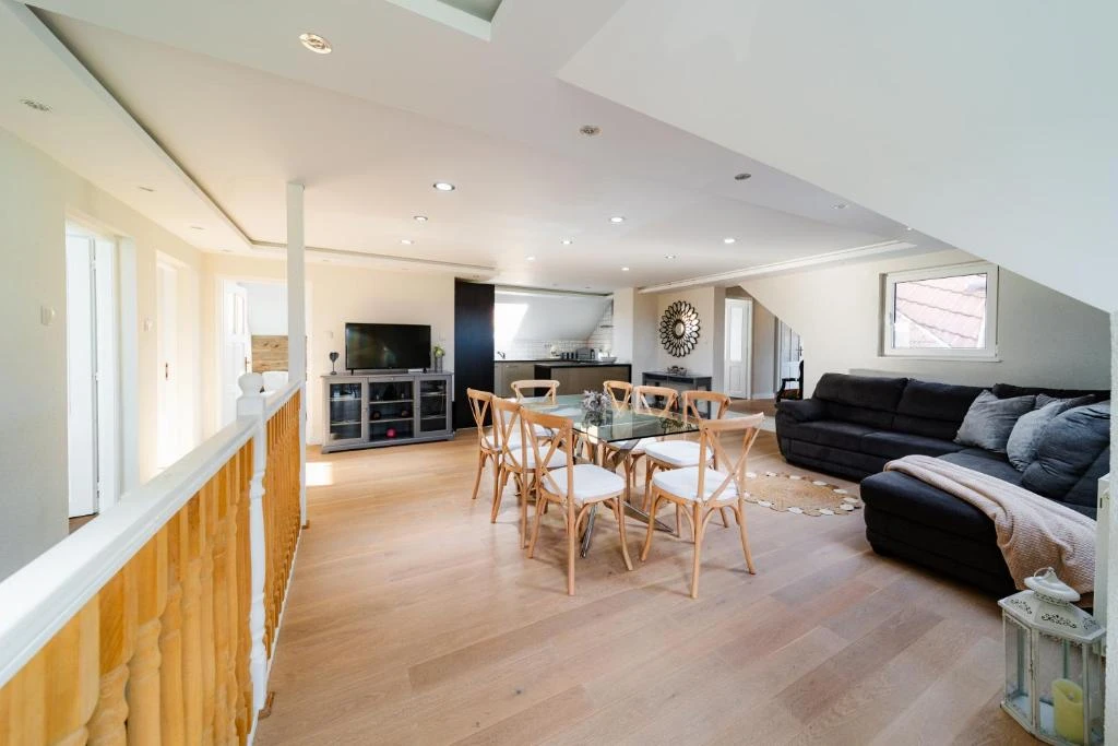A közös étkezések a nagy, tágas nappali-étkező térben könnyen megszervezhetők baráti társaságok vagy csoportok számára.