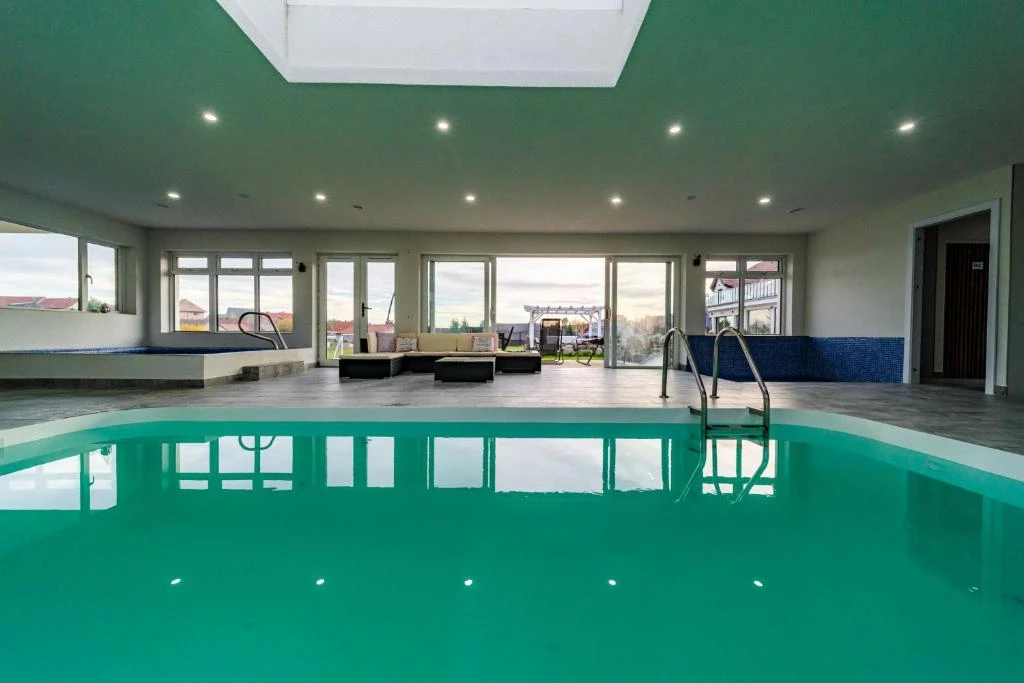 Wellness-részleg (beltéri medence, jakuzzi, szauna, sószoba)
