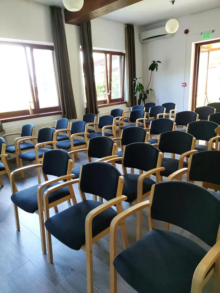 - A konferenciaterem modern felszereltségű: természetes fénnyel, moduláris bútorokkal, flipcharttal, vetítővászonnal, projektorral, DVD-lejátszóval és hangrendszerrel rendelkezik, így tökéletes választás bármilyen eseményhez.