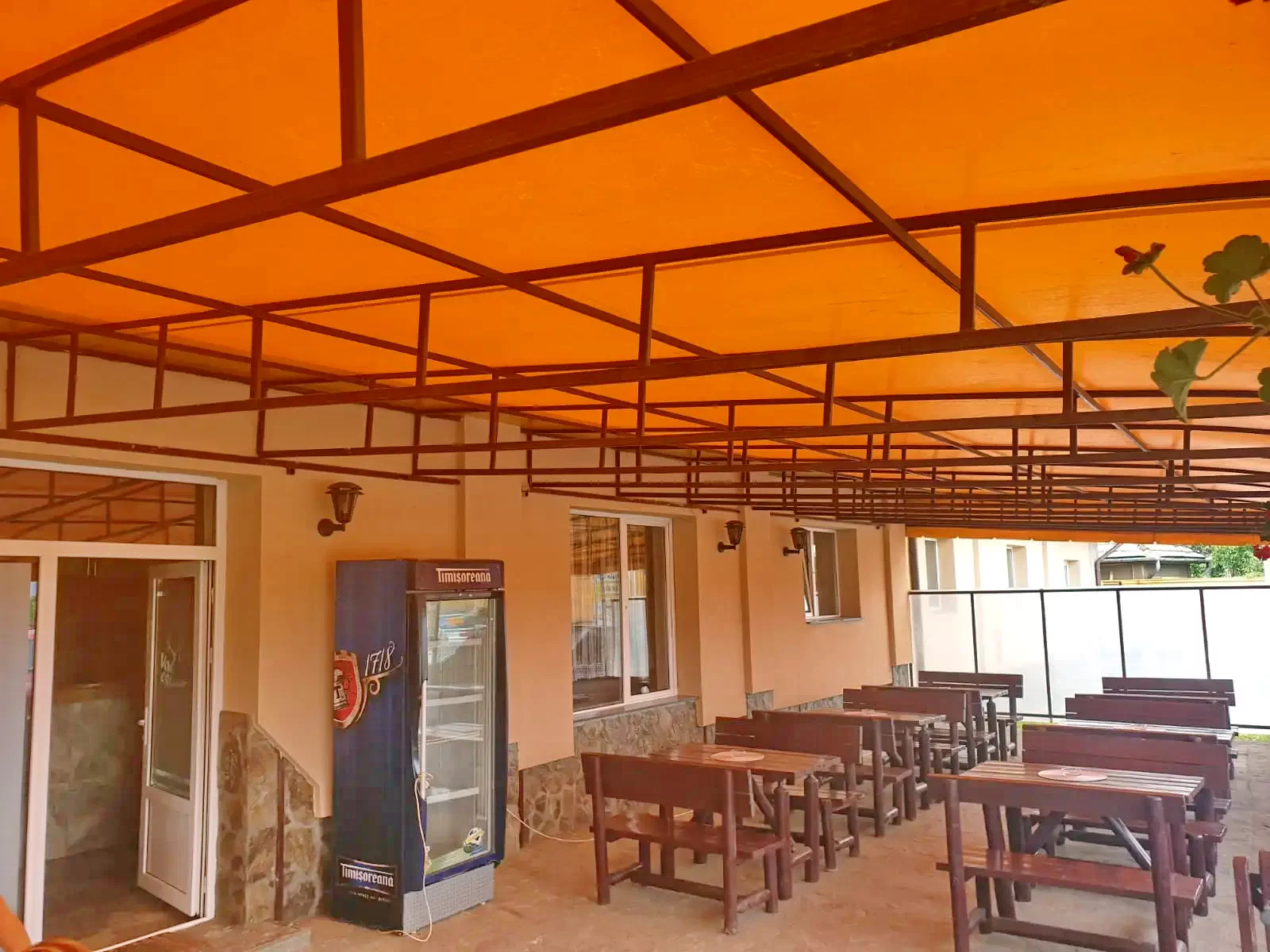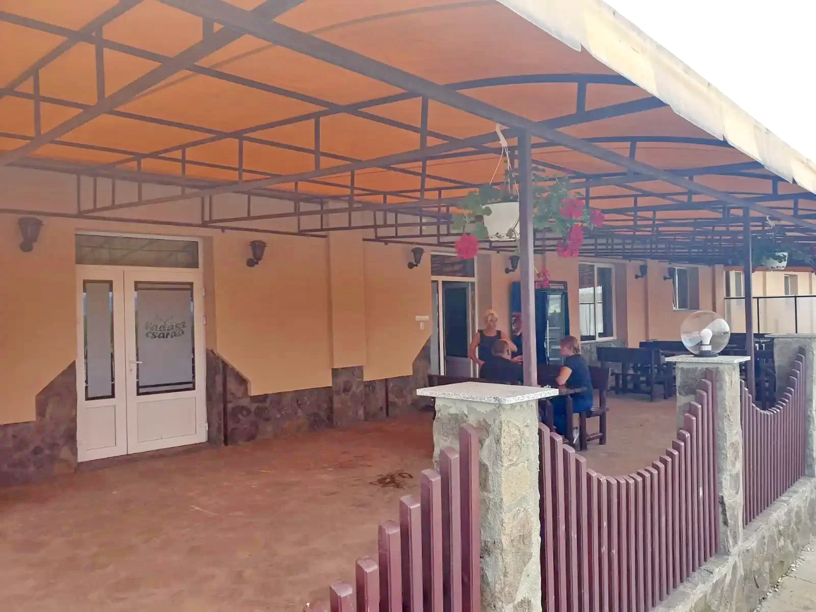 Szabadtéri födött terasz, valamint ingyenes parkolási lehetőség biztostott a panzió épülete előtt.