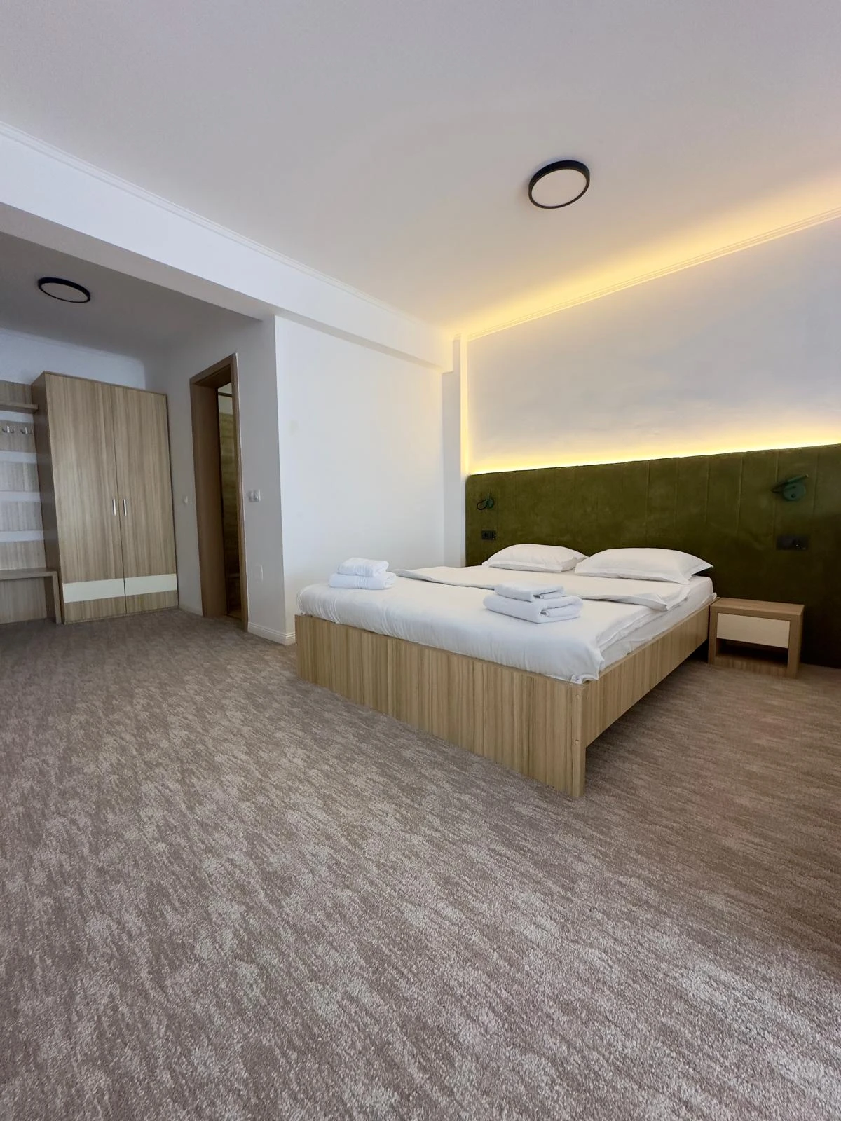 - Superior Double/Twin: 20–25 m², privát terasz, walk-in zuhany, modern bútorzat