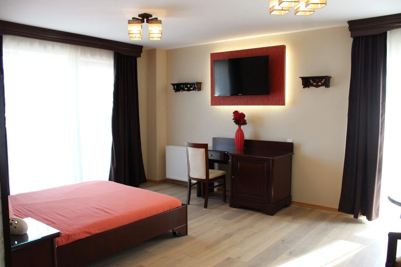 - Minden szoba elegáns, masszív bútorokkal berendezett, és olyan kényelmi funkciókkal felszerelt, mint az LCD TV, ingyenes WiFi, valamint saját fürdőszoba zuhanyzóval és ingyenes piperecikkekkel.