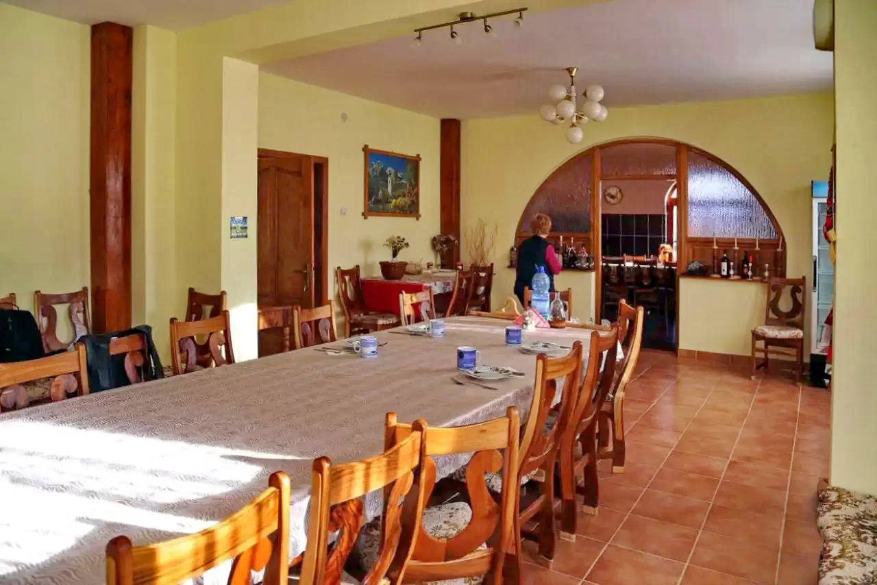 50 férőhelyes tágas ebédlőjében félpanziót (reggelit, vacsorát), valamint felszerelt konyha lehetőséget biztosít szállóvendégei számára.