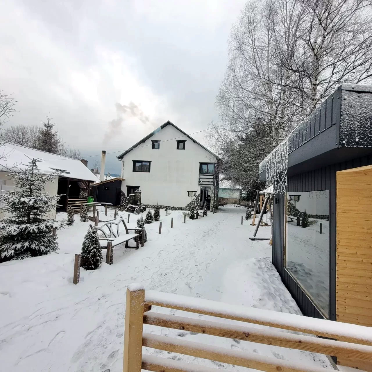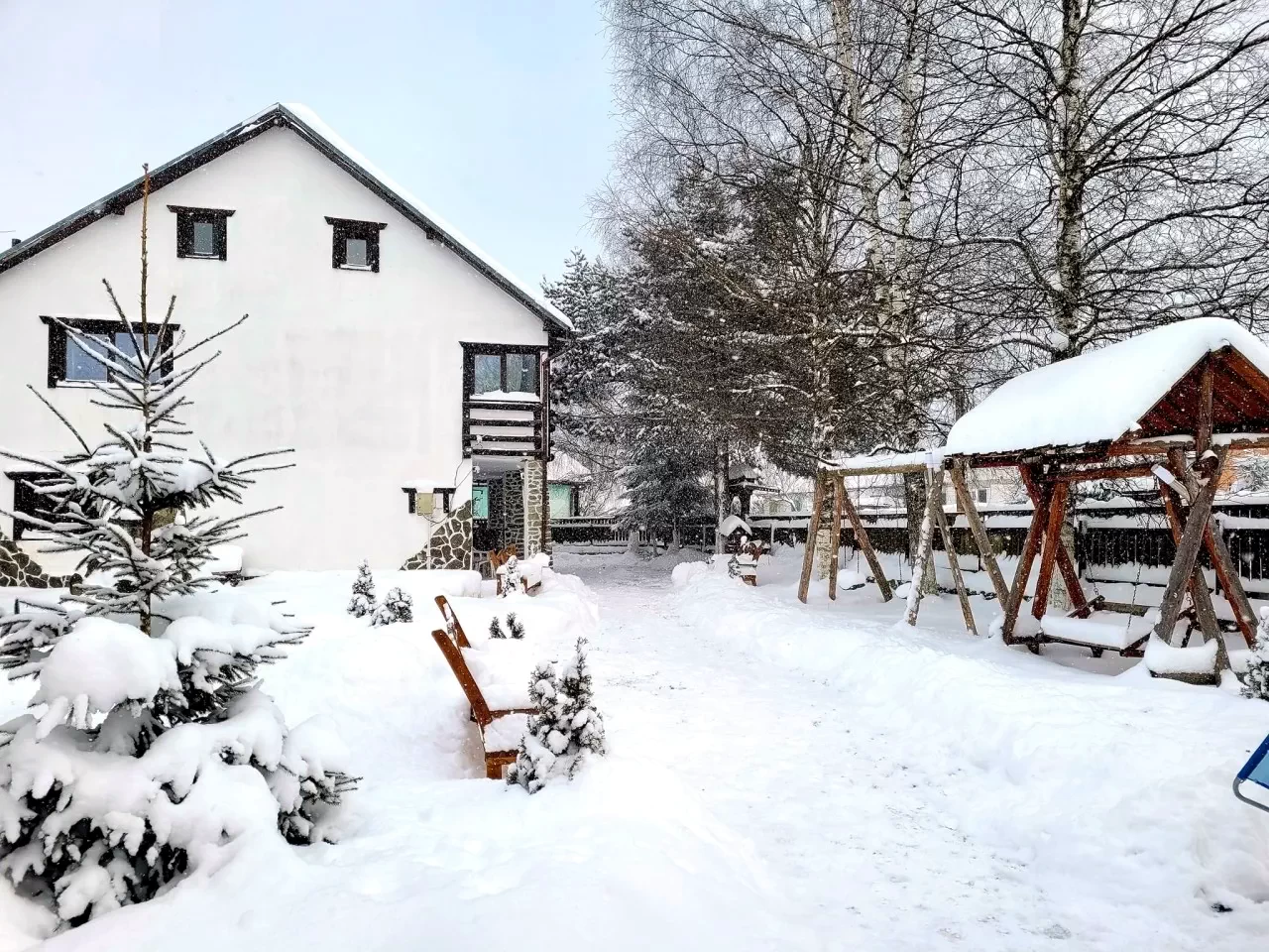 - A panziókert kifejezetten gyermekek számára készült, néhány játékhintával és egy kis artéziai szökőkútdal.