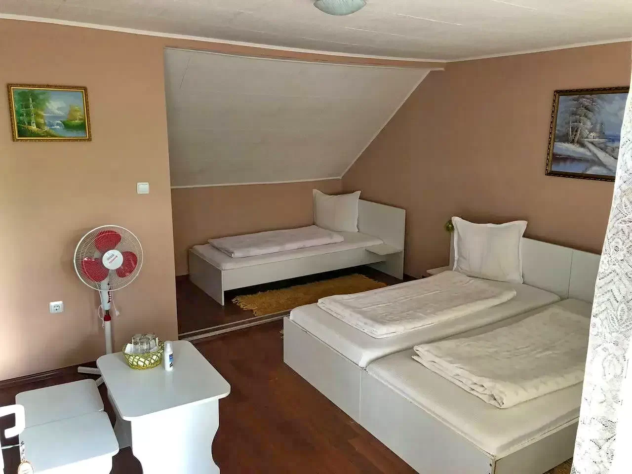 - Az emeleten elhelyezkedő szobák mindegyike saját fürdőszobával rendelkezik, továbbá minden szobában TV, asztal, székek és ruhásszekrény található.