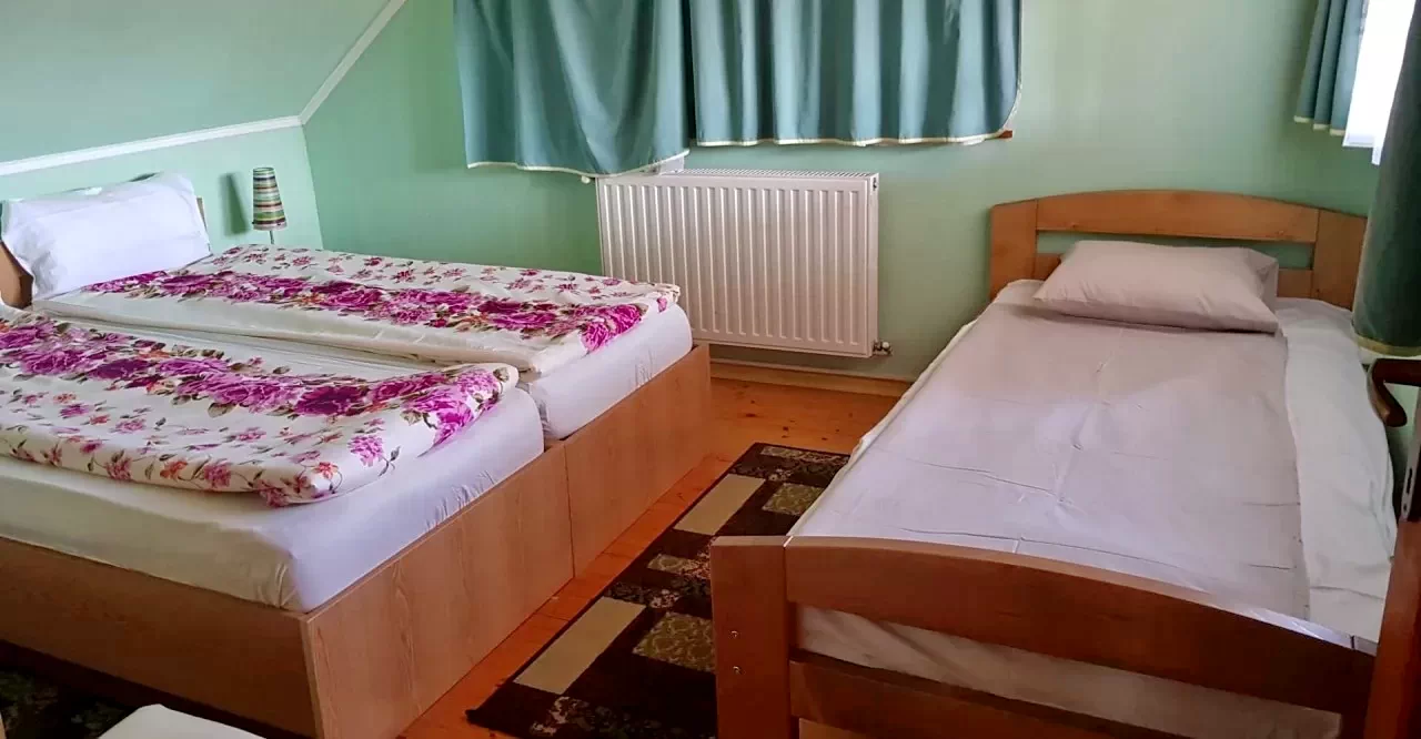Kényelmes szállást biztosít 11 személy számára 2 és 3 ágyas szobákban.