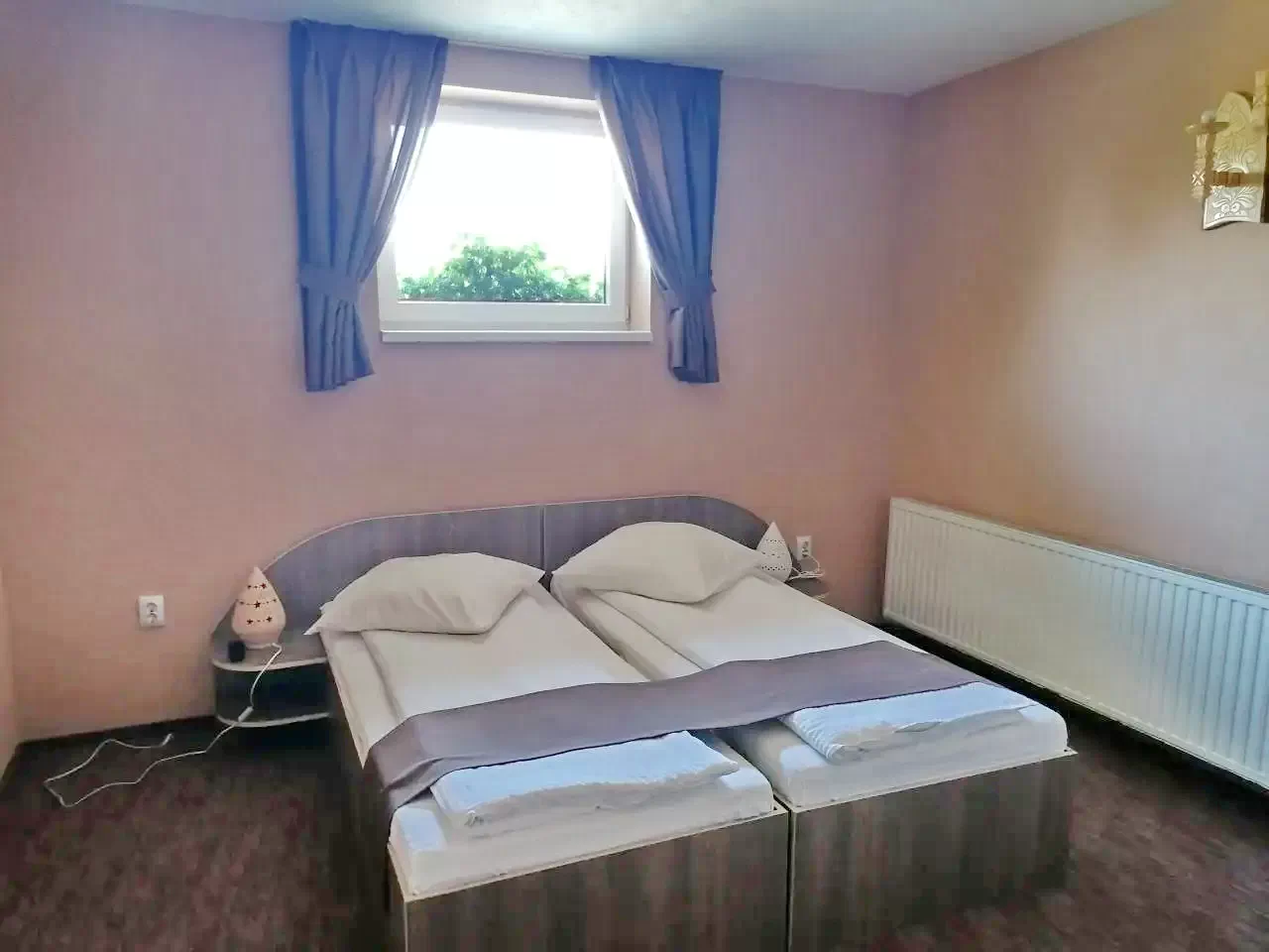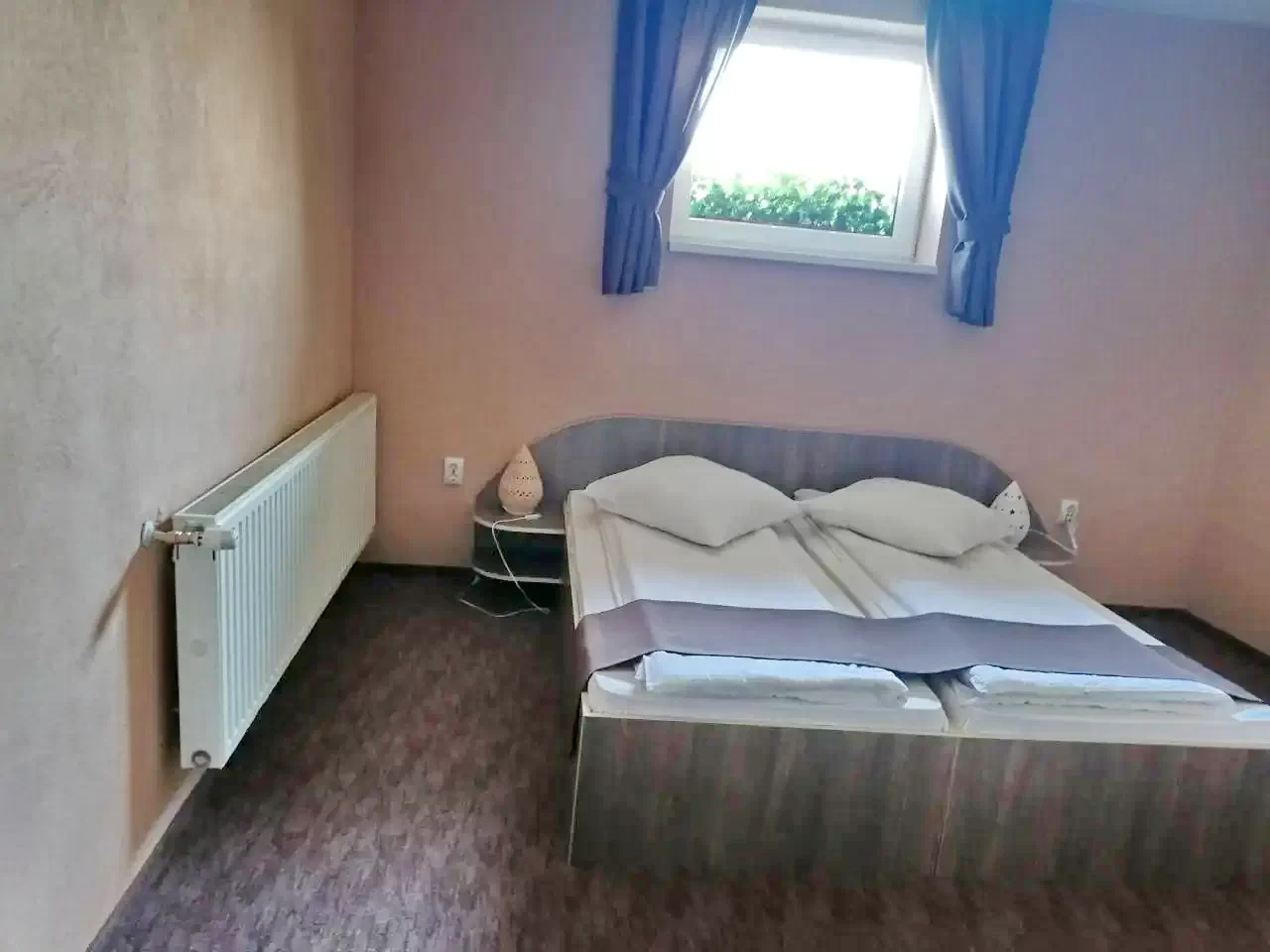 - 1 négyszemélyes szoba (1 db franciaágy és 2 db egyszemélyes ágy, fürdőszoba)