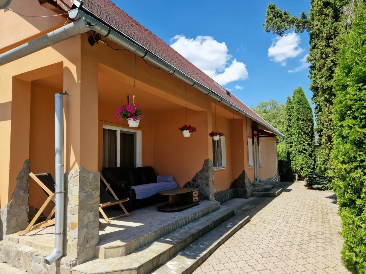 - A háznak tágas udvara van terasszal, ahol a vendégek pihenhetnek és élvezhetik a hegyi friss levegőt.