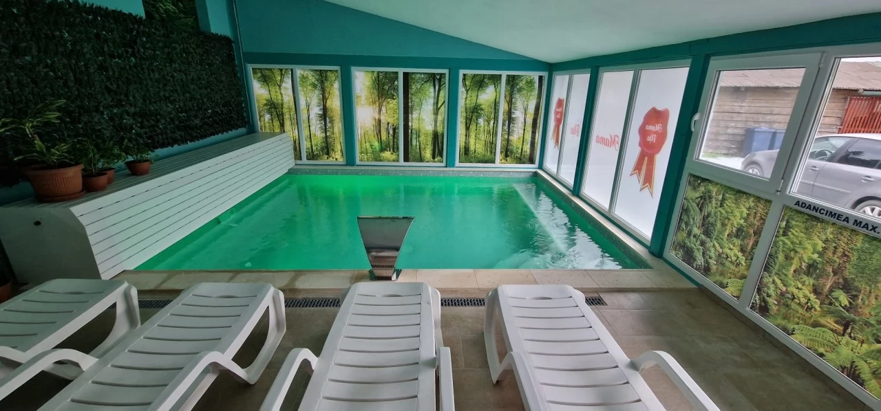 Szállás Szilveszter Bihar-hegység Felsőgirda Kulcsosház*** | Erdőszélen tisztáson, Wellness: szauna, medence, étterem, WIFI, légkondi, terasz, konfercia-játékterem, kert, kemence, filagória, grill, sportpálya, parkoló | 14km Aranyos-sípálya, 25km Bélesi-tó