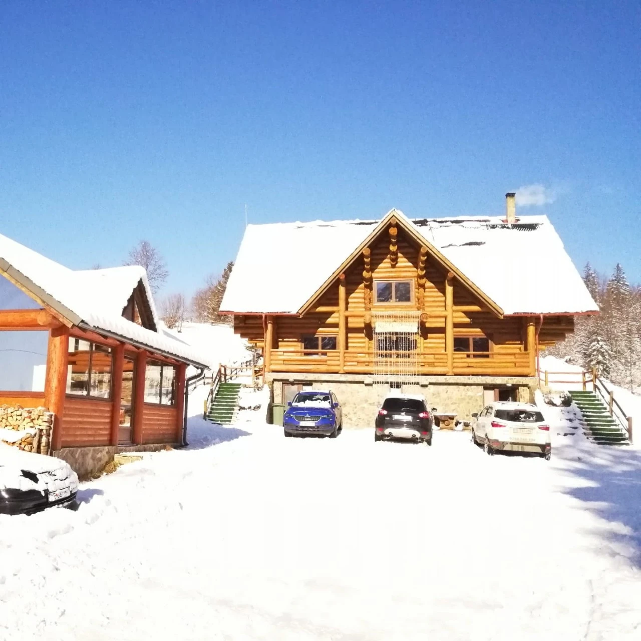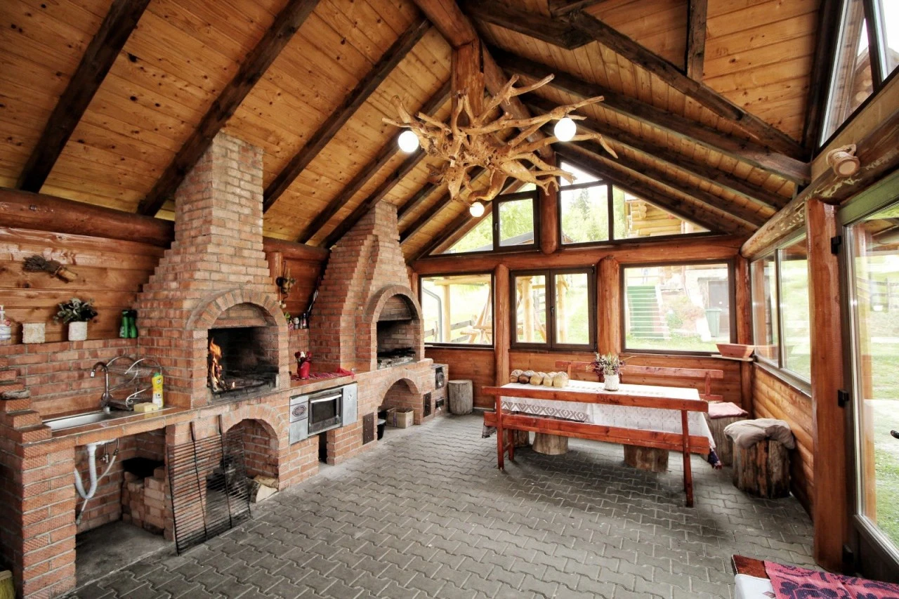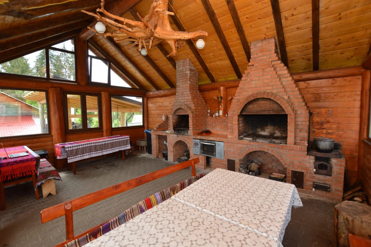 Szállás Szilveszter Bihar-hegység Felsőgirda Panzió*** | Panorámás erdőszéli gerendaház; Étkező, konyha, nappali, kandalló, pezsgőfürdő, központi fűtés, terasz, kert-udvar, pavilon, grillező, farmgazdaság, parkoló | 1km Aranyosfői-jégbarlang, 25km Vârtop
