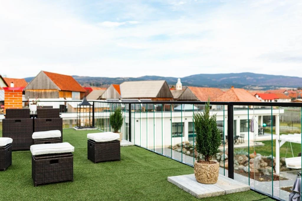 A közel 800 m² alapterületű épület modern, tágas terekkel rendelkezik, melyek harmonikusan ötvözik a kortárs kényelmet a hegyvidéki hangulattal. A komplexumban 2 nappali / étkező szalon, wellness-részleg és több közösségi tér áll rendelkezésre, így a nagyobb csoportok is kényelmesen elférnek.