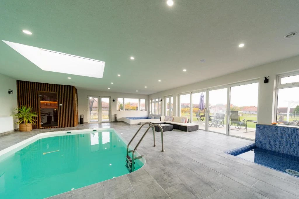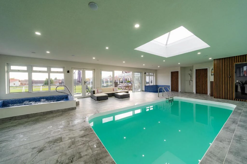 Wellness-részleg (beltéri medence, jakuzzi, szauna, sószoba)