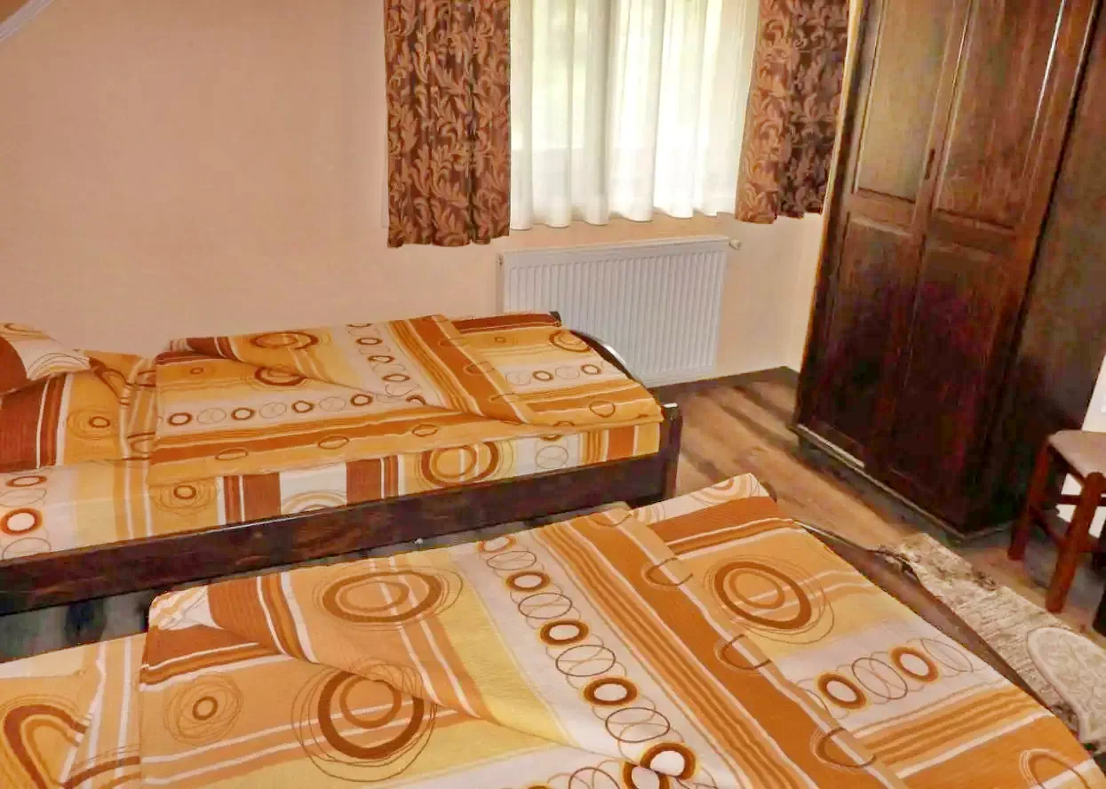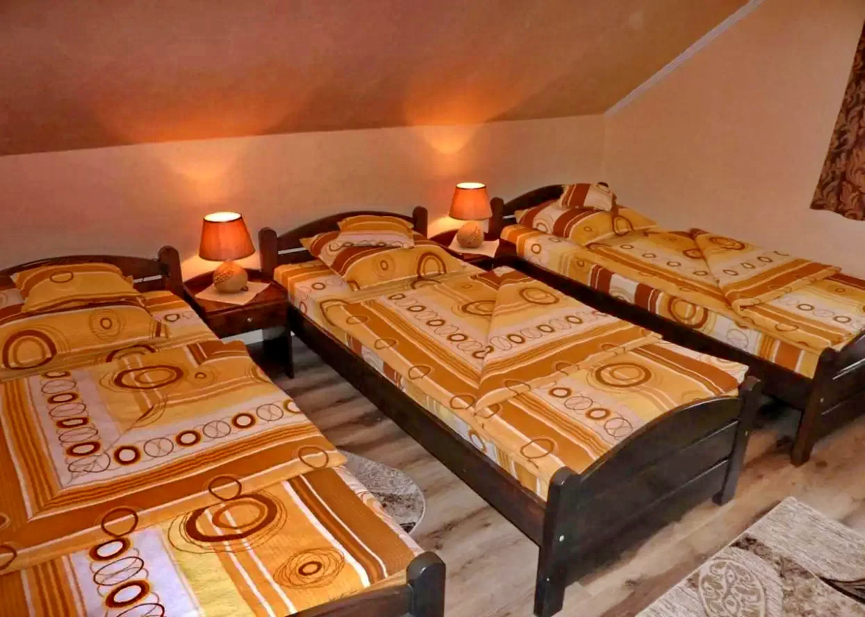 - Alsó szint: 3 kétágyas szoba (összesen 6 férőhely).