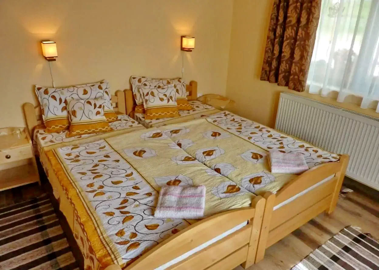 - Szobák elosztása: 3 egyszemélyes és 6 kétszemélyes ágy (összetolható/szétválasztható), összesen 15 (+2) férőhely.