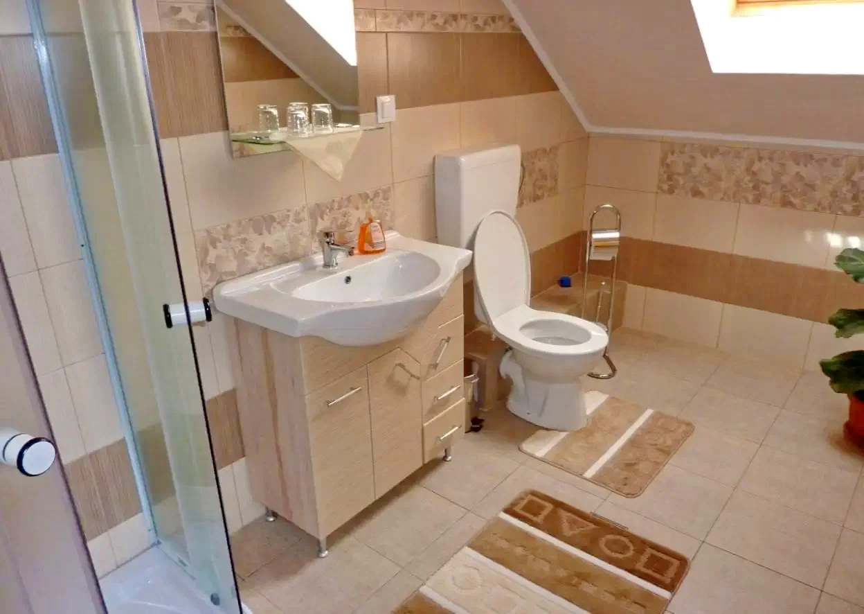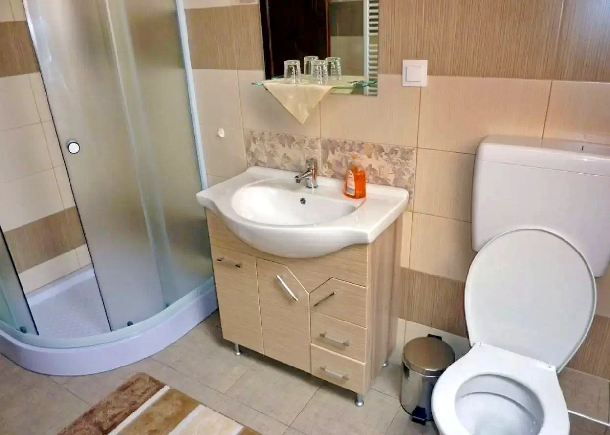 - Négy fürdőszoba modern berendezéssel (zuhanyzó, WC, kézmosókagyló).