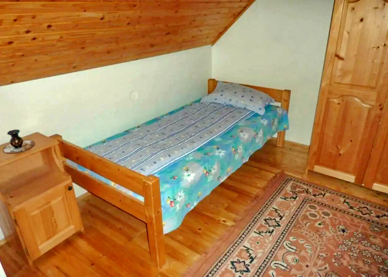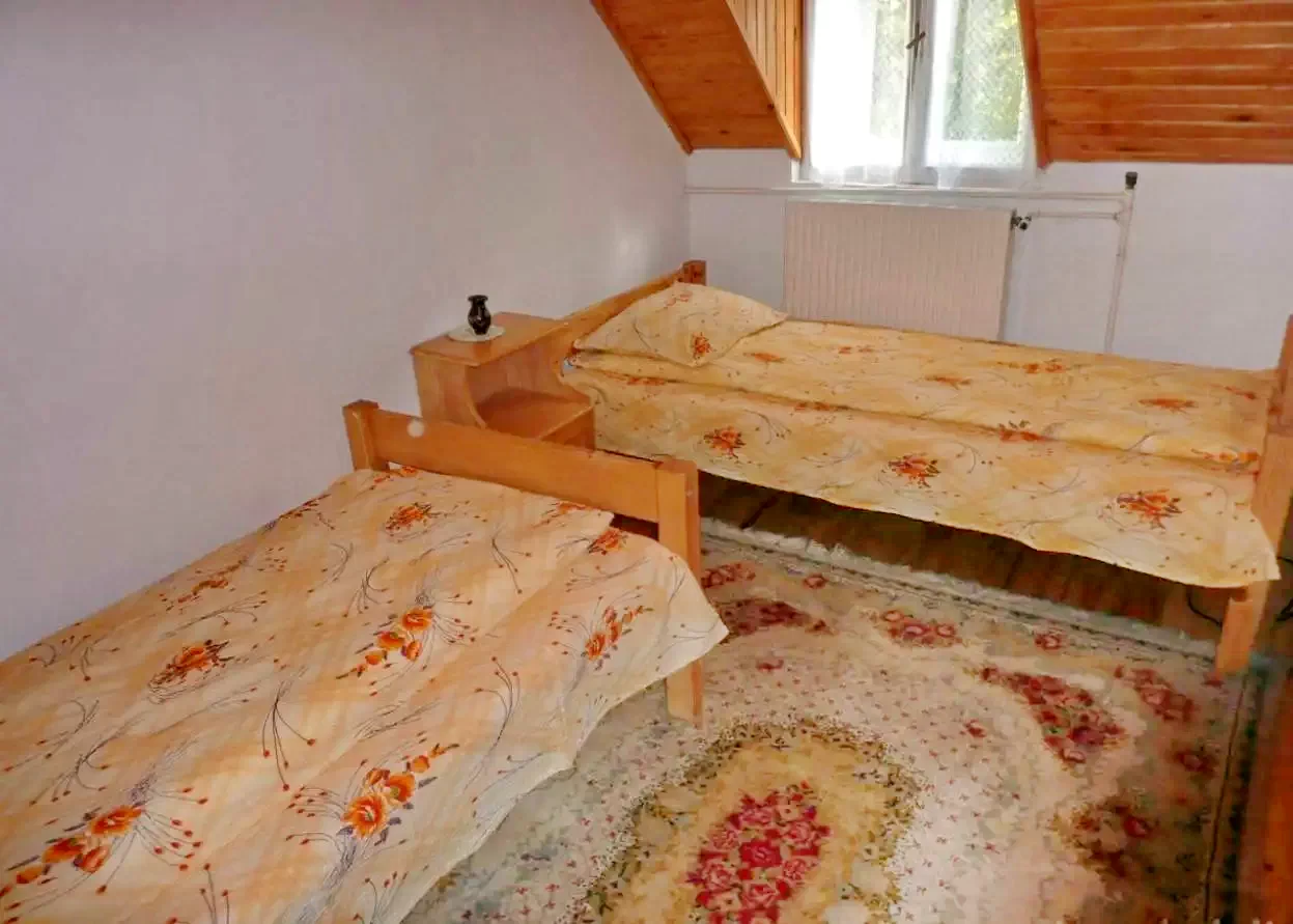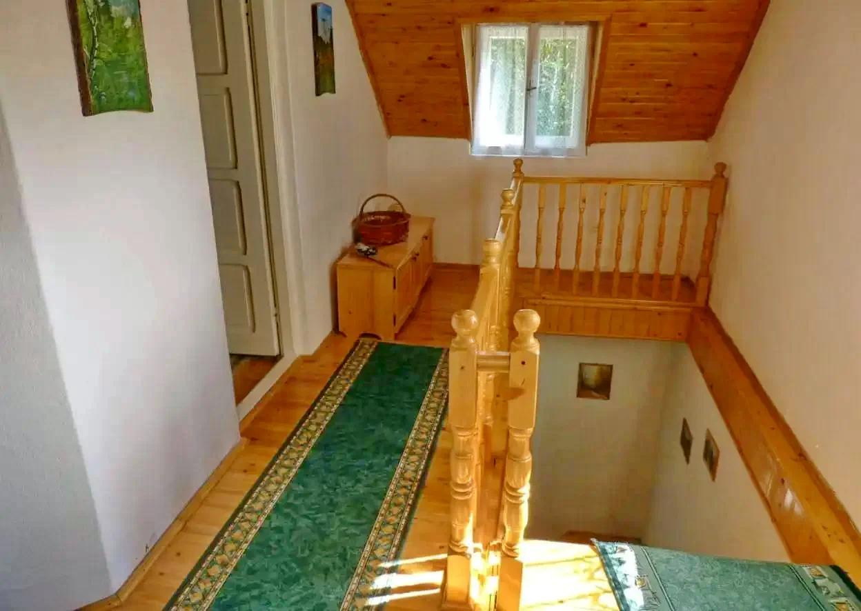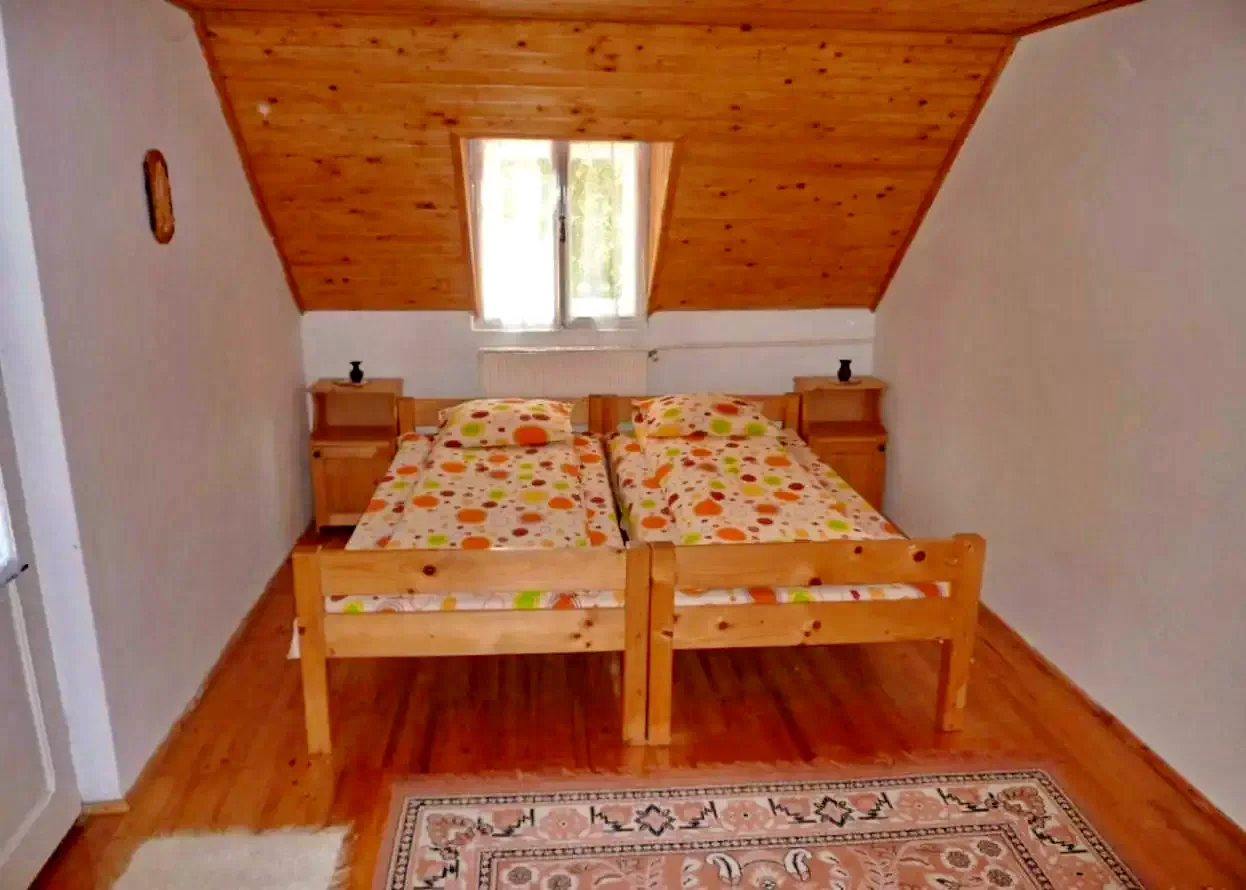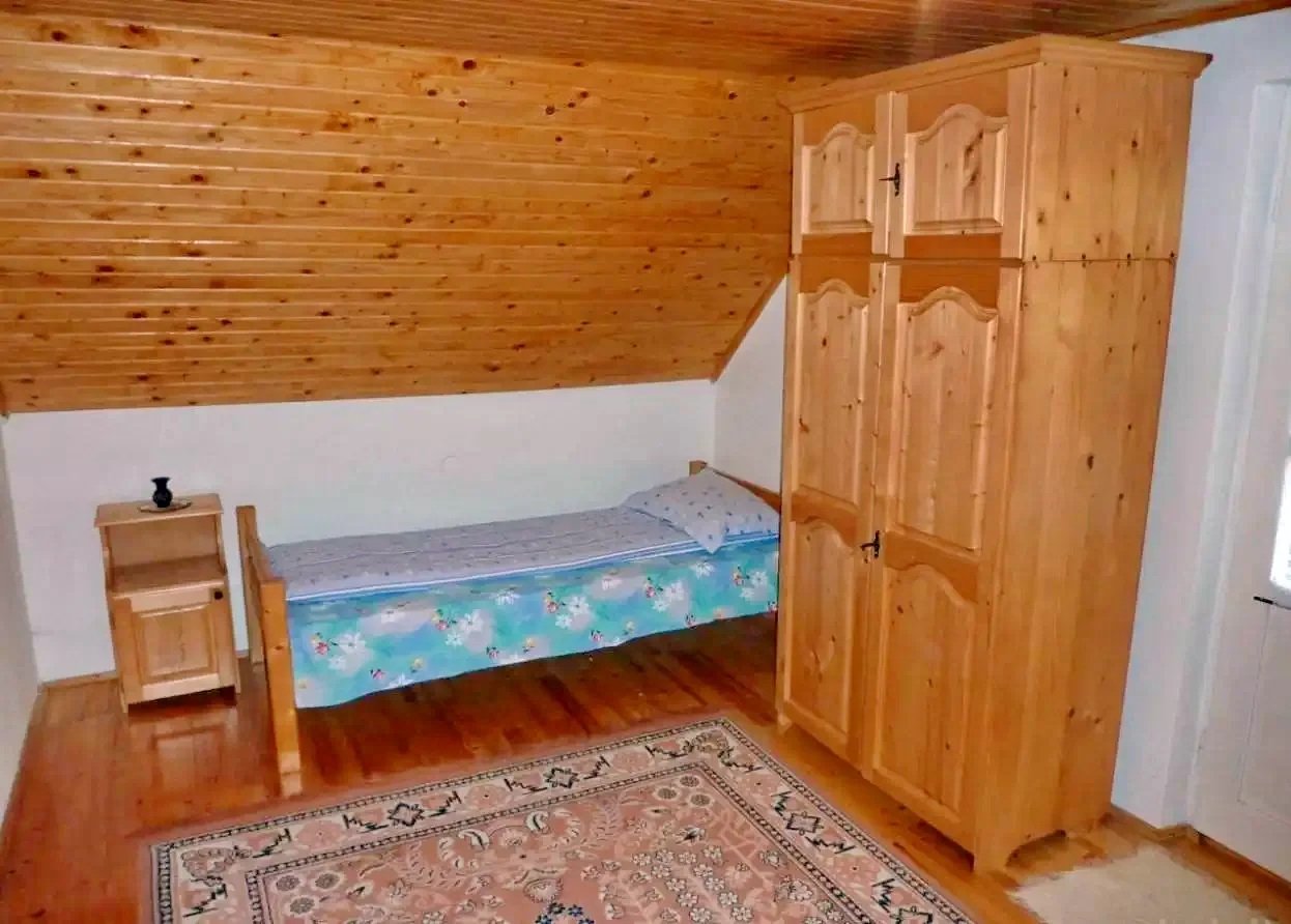 - Emelet: Három szoba (2 egyszemélyes ágy; 1 egyszemélyes ágy; 1 kétszemélyes + 1 egyszemélyes ágy), valamint egy külön WC kézmosókagylóval.