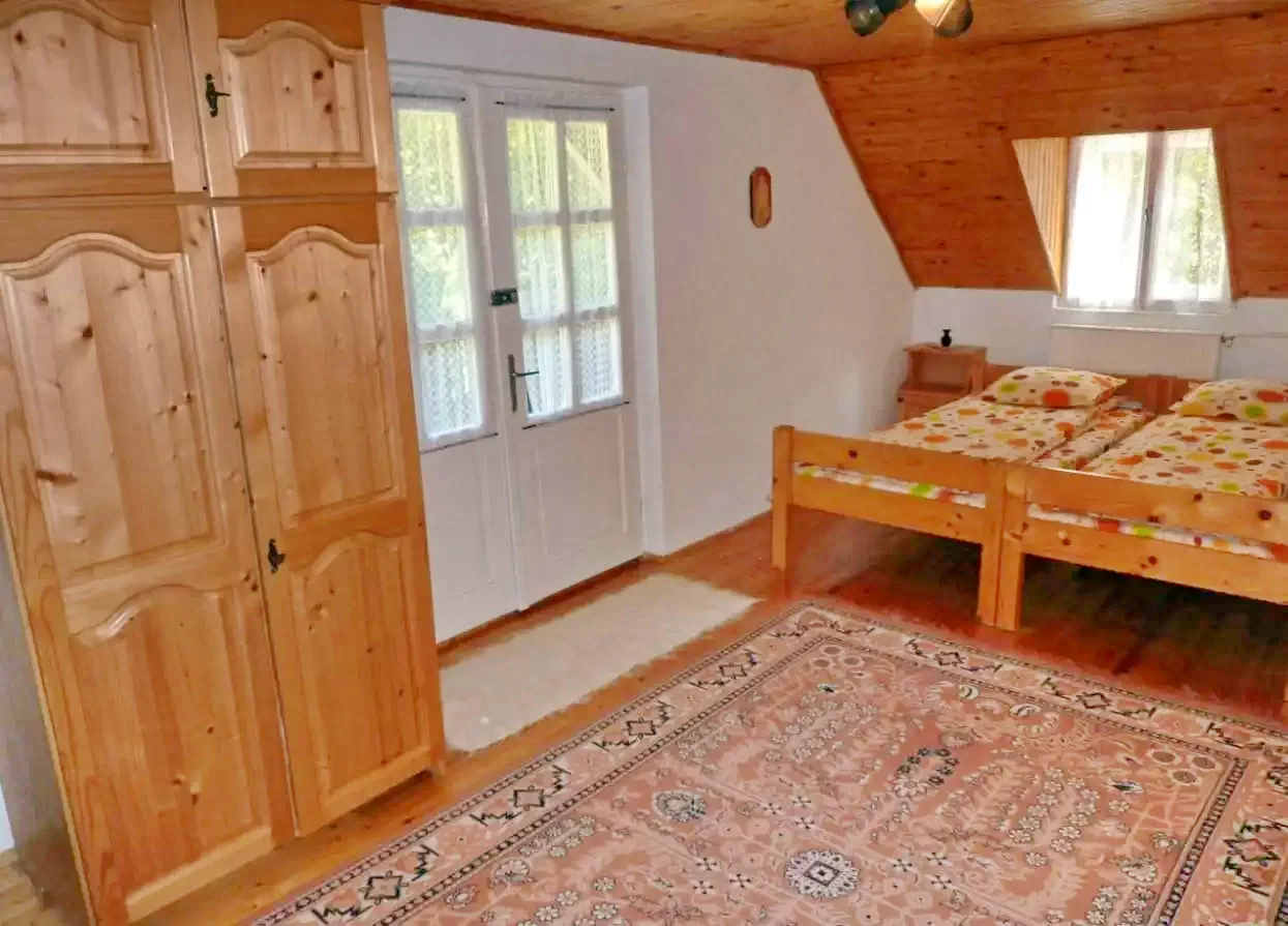 - Az emeleten három további szoba várja a vendégeket: az elsőben két egyszemélyes ágy, a másodikban egy egyszemélyes ágy, a harmadikban pedig egy kétszemélyes és egy egyszemélyes ágy kapott helyet, amely a második szobából nyílik.