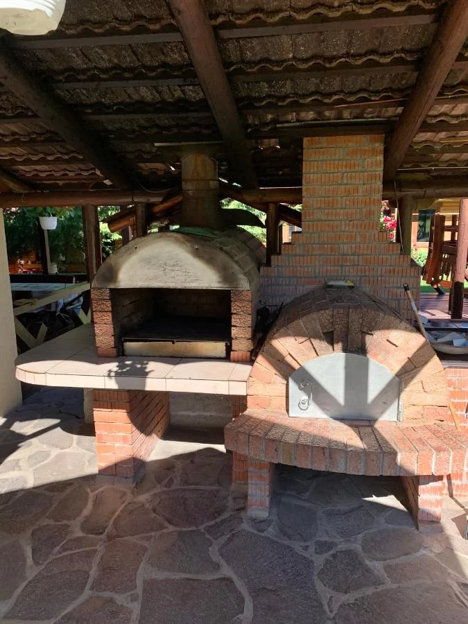 - Ezenkívül egy fedett, kültéri terasz kandallóval, sütővel és ülősarokkal biztosít kellemes étkezési lehetőséget 20-30 fő számára.