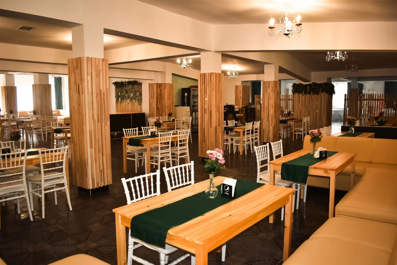 Vendégeinek hagyományos román és nemzetközi konyhával rendelkező 300 férőhelyes éttermet kínál, ahol különféle nagyobb létszámú rendezvények, ünnepi étkezések lebonyolítására biztosít lehetőséget.