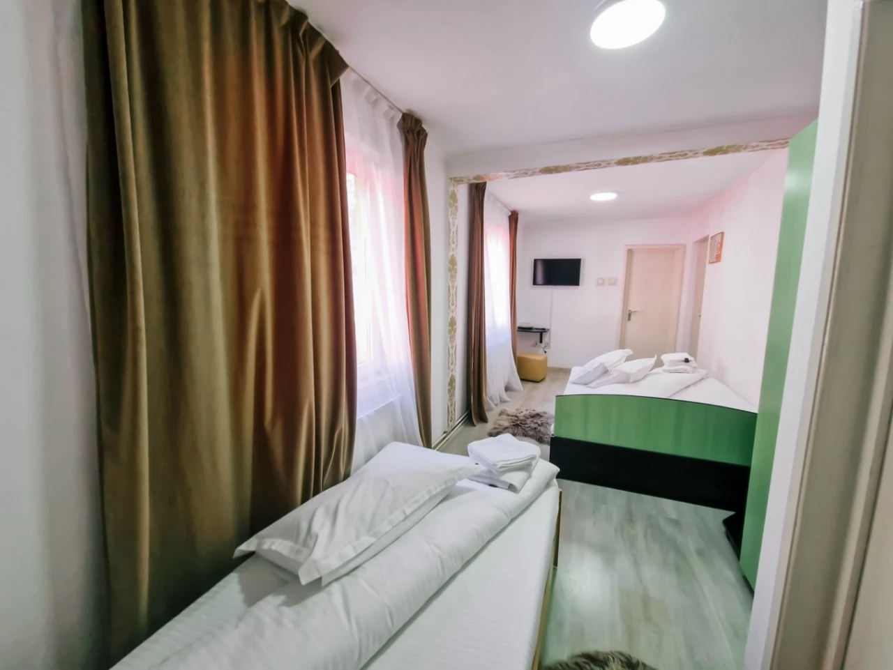 - 4 szoba, mindegyikben 2 egyszemélyes ágy és egy lehúzható kanapé