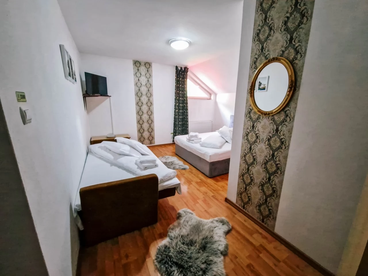- 2 háromágyas szoba: 1 franciaágy 1 egyszemélyes ágy
