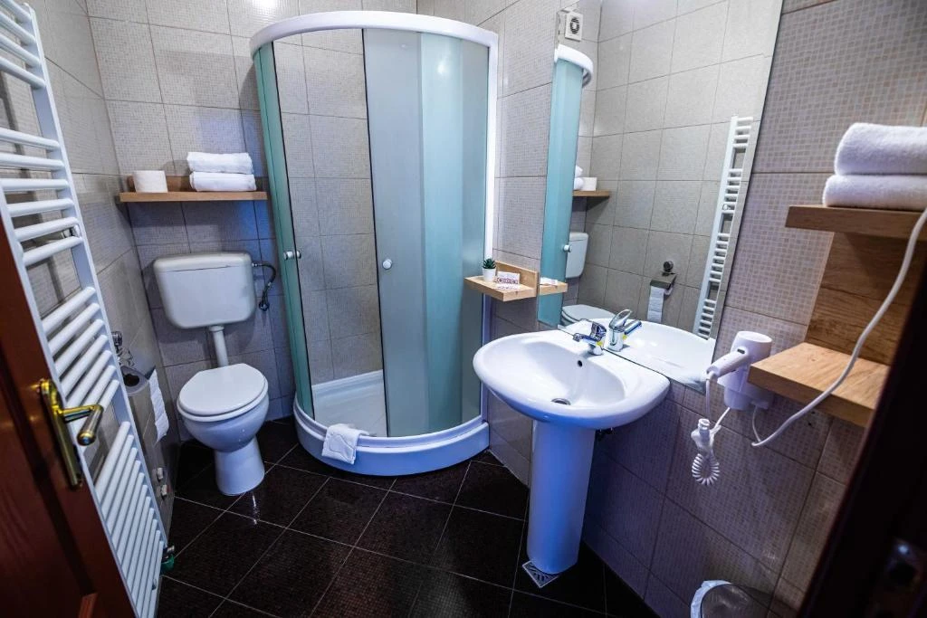 Minden szobához saját fürdőszoba tartozik zuhanyzóval vagy káddal.