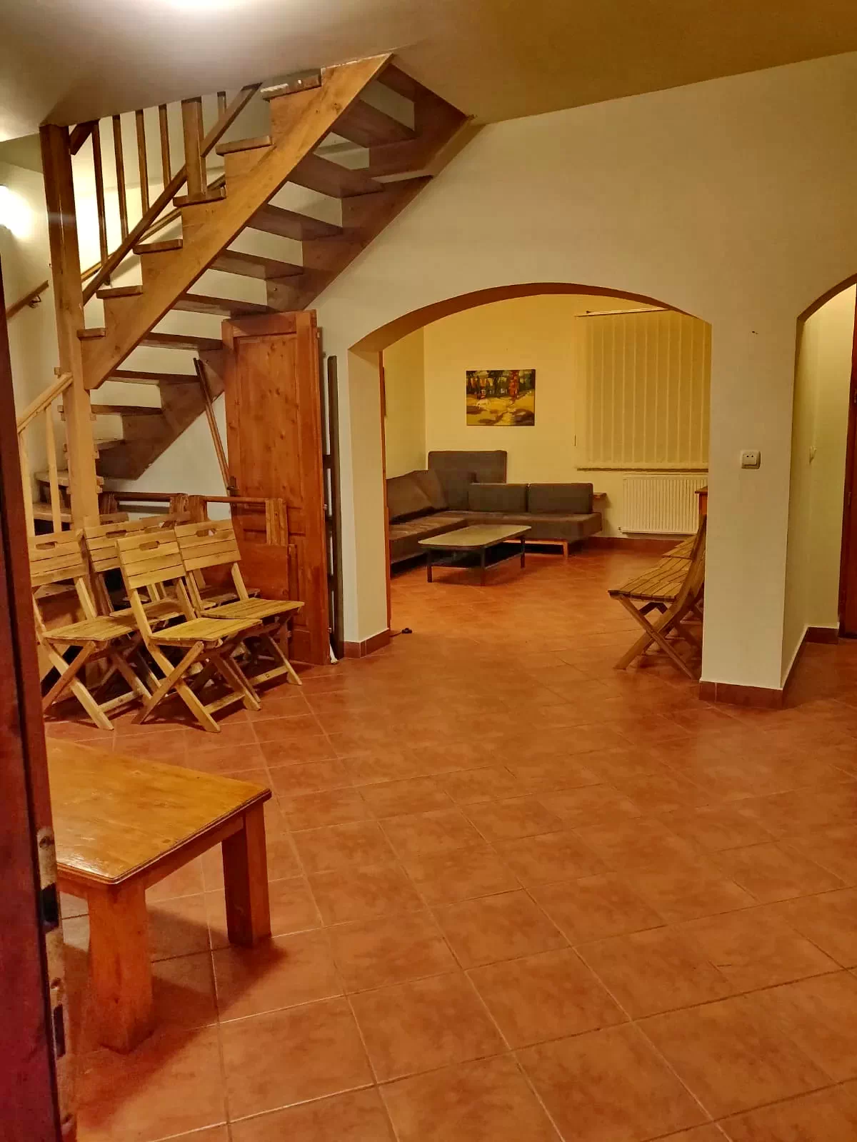 II. Épület: Teakonyha, nappali-ebédlő, 4 szoba közös fürdőszobával.