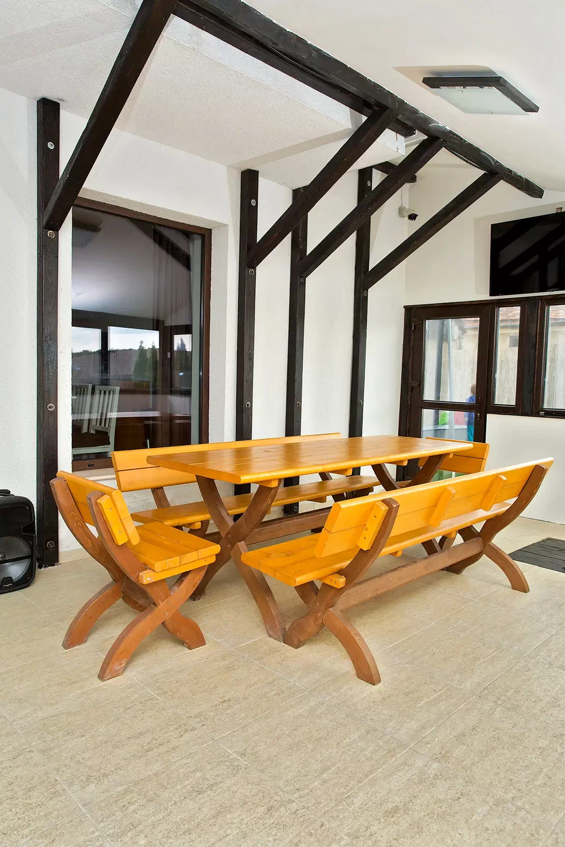 - A tágas közös terek – nappali, konyha és fedett terasz – ideálisak közös pihenéshez vagy esti beszélgetésekhez.