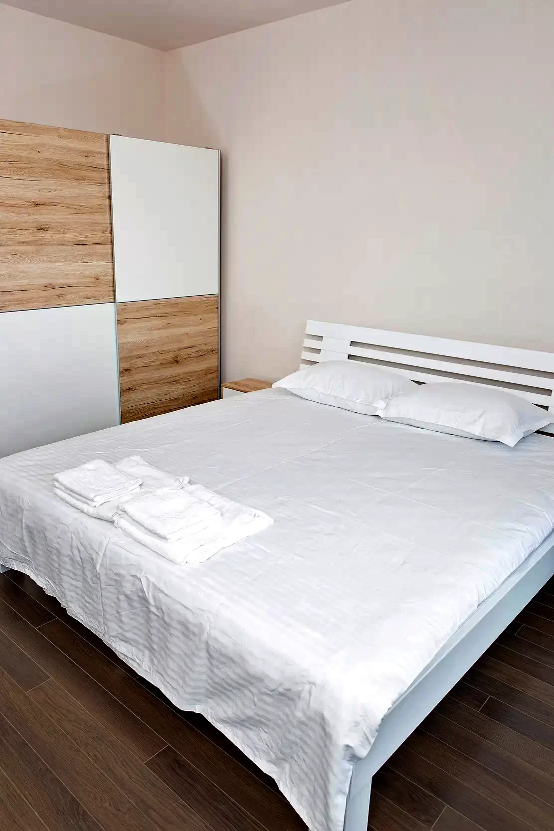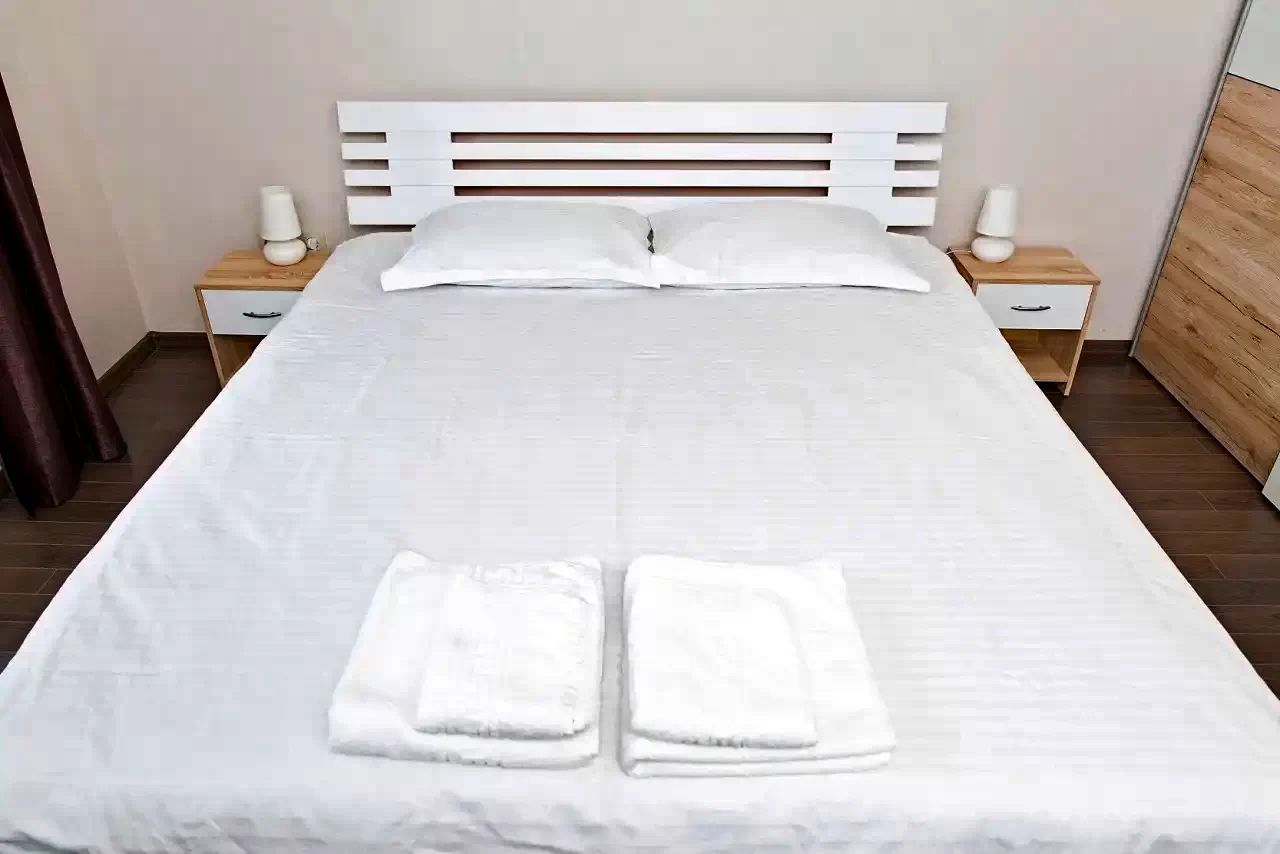 - A szállásunk öt kényelmes, franciaágyas hálószobával rendelkezik, mindegyikben síkképernyős TV, WiFi, tárolóhely, asztal és székek találhatók.