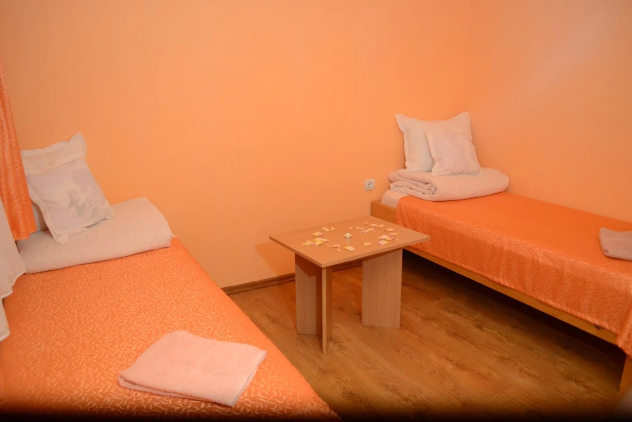 - 1 szoba: 2 egyszemélyes ággyal, kicsi fürdővel