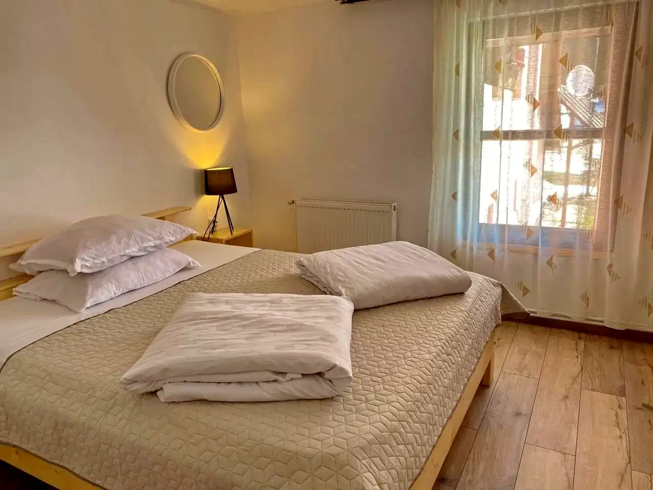 - 2. szoba 2 vagy 3 ággyal (egy franciaággyal és egy egyszemélyes ággyal), saját fürdőszobával.