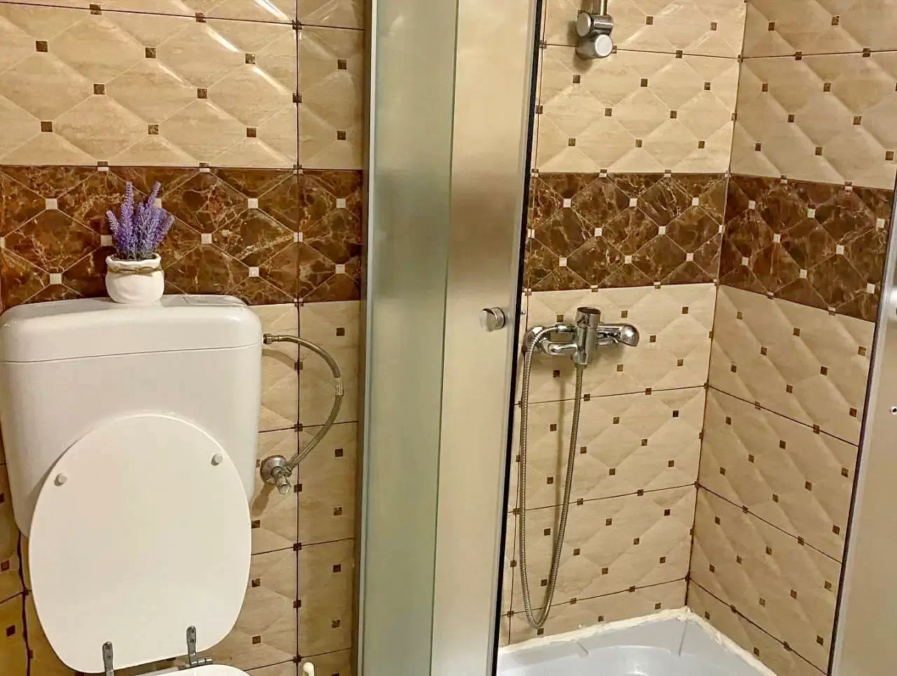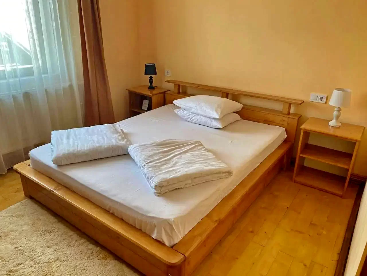 - 1. szoba 2 vagy 3 ággyal (egy franciaággyal és egy egyszemélyes ággyal), saját fürdőszobával.