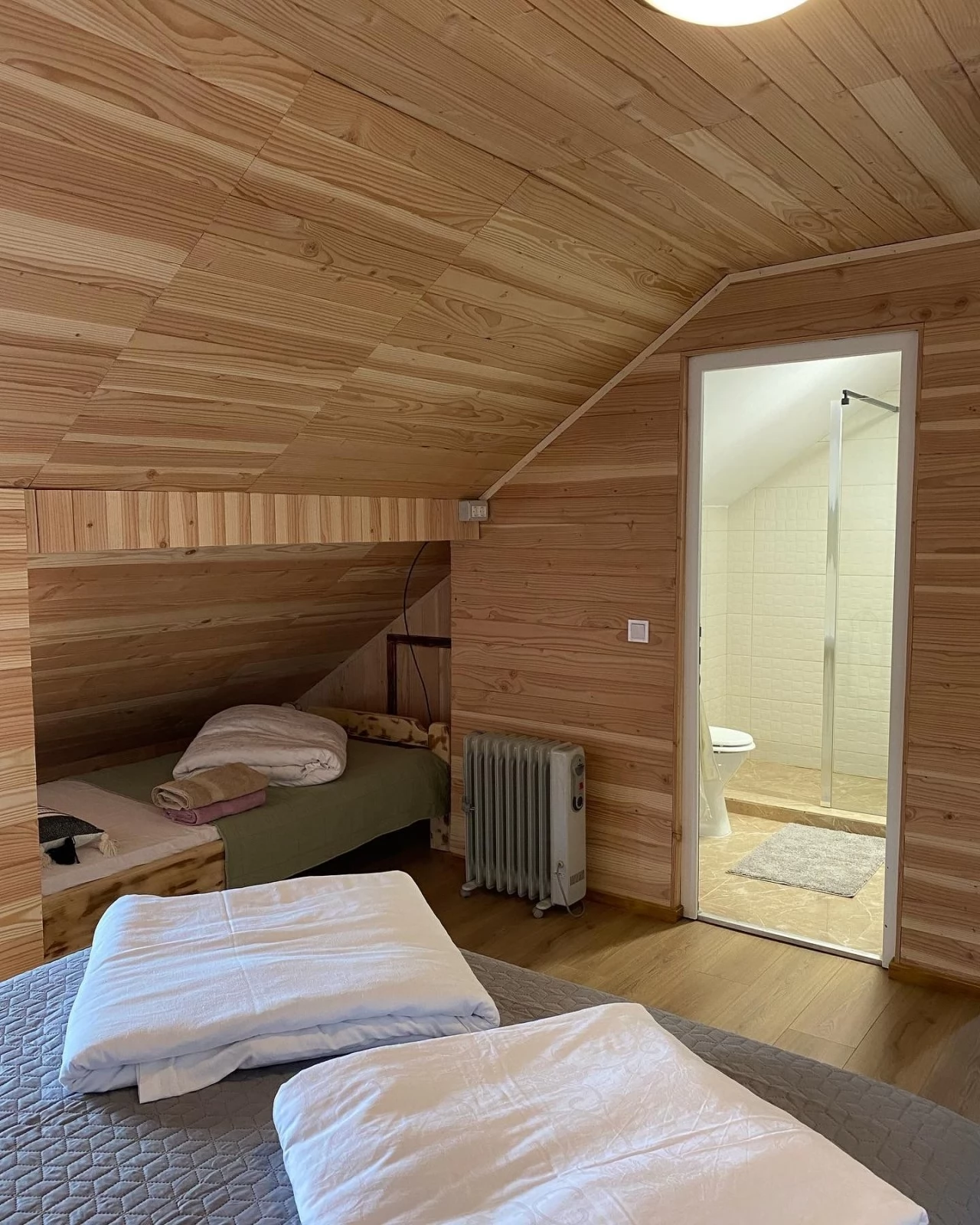 - 15-ös szoba (tetőtér) 4 fő részére - 2 franciaágy saját fürdőszobával