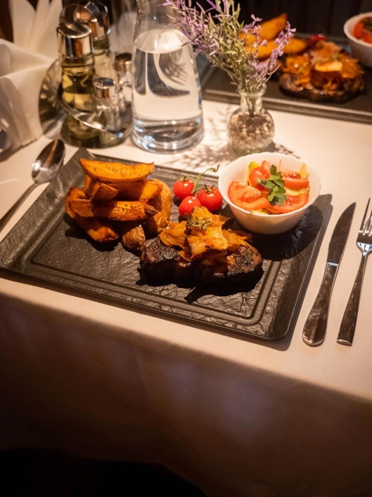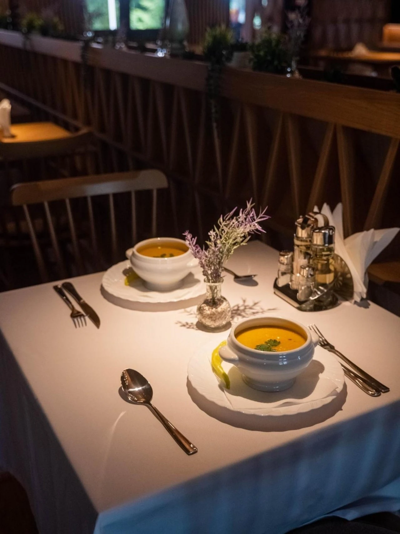 A rusztikus, mégis kifinomult légkörben a vendégek friss, helyi alapanyagokból készült fogásokat kóstolhatnak, amelyek között vegetáriánus opciók is elérhetők.