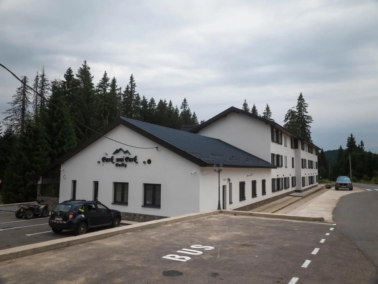- A hotel egy modern, háromszintes épület, amelyet fenyőfák ölelnek körül, harmonikusan illeszkedve a Pádis-fennsík természeti környezetébe.