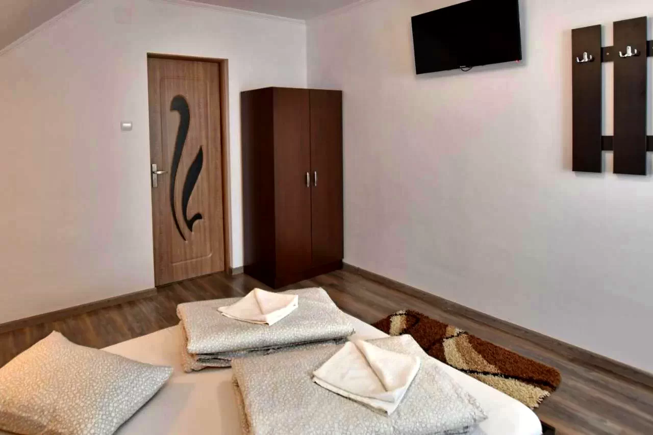 - Az első szobában: 1 franciaágy és 1 egyszemélyes ágy található,