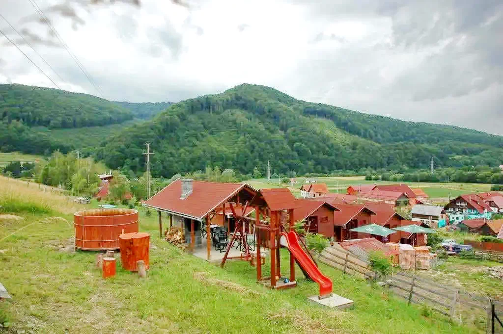 Szállás Szilveszter Parajd Vendégházak | Wellness: dézsafürdő; 9 panorámás, dombra épült kulcsosház, mindenikben konyha, szoba, fürdő. Közös: WIFI. Kert, grill, játszőtér, parkoló | 200 m Parajd Sóbánya, 10 km Szováta Medve tó, 76 km Gyilkostó