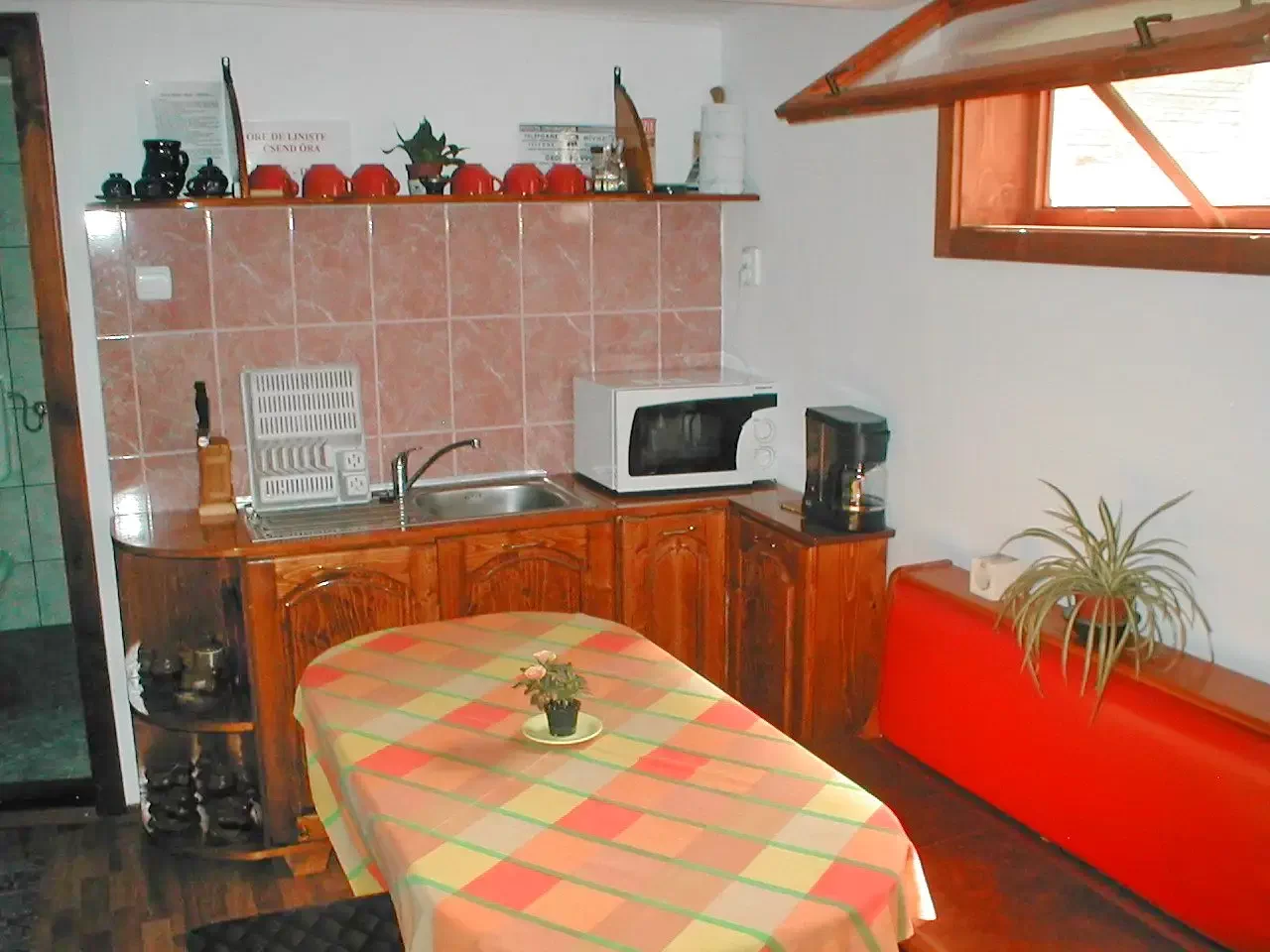 - Felszerelt konyha (villanytűzhely, mikrohullámú sütő, hűtőszekrény, tea – kávéfőző, stb.)