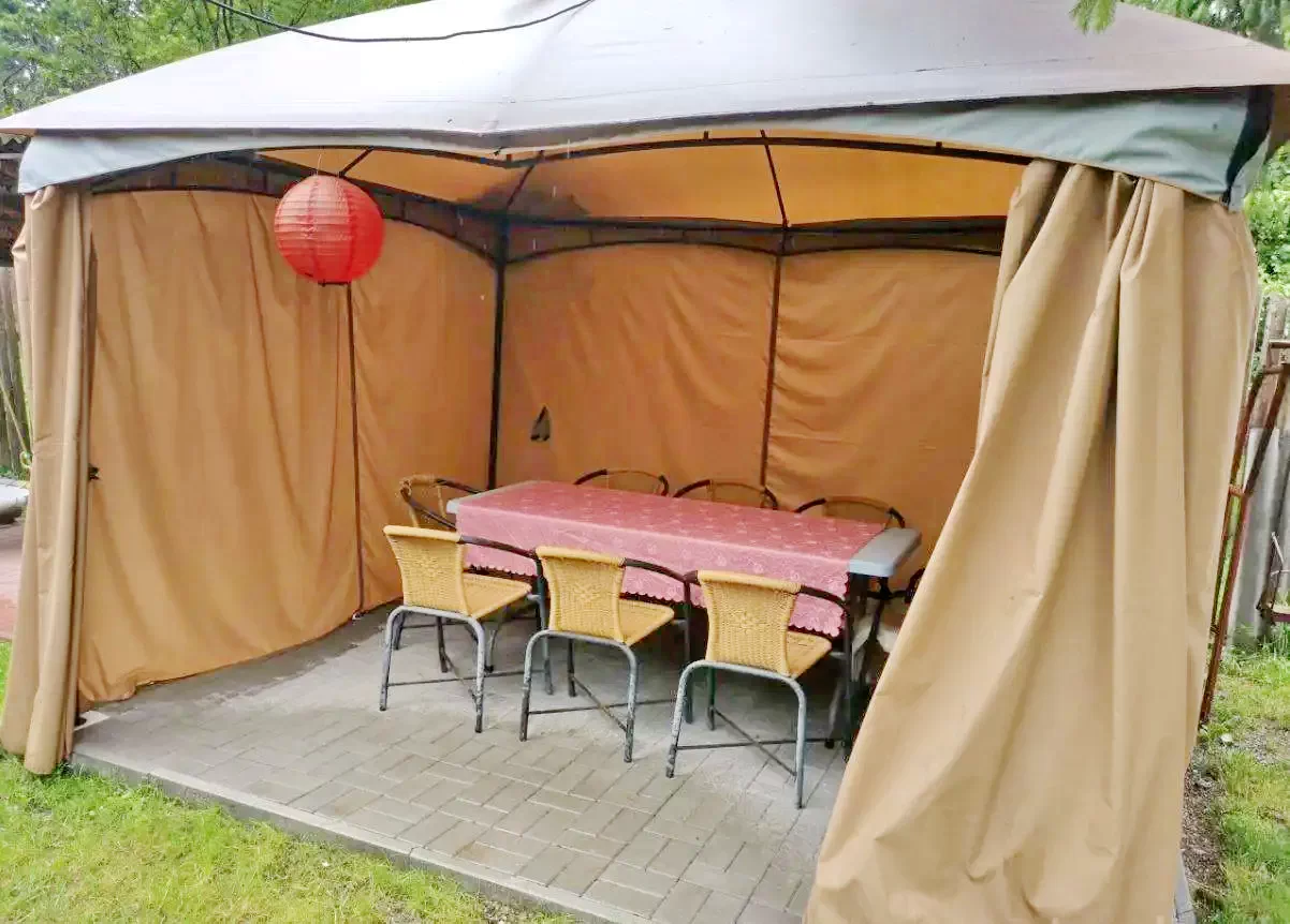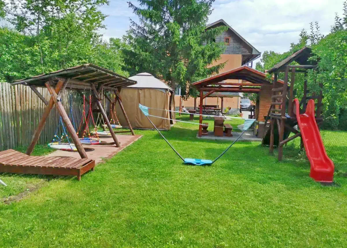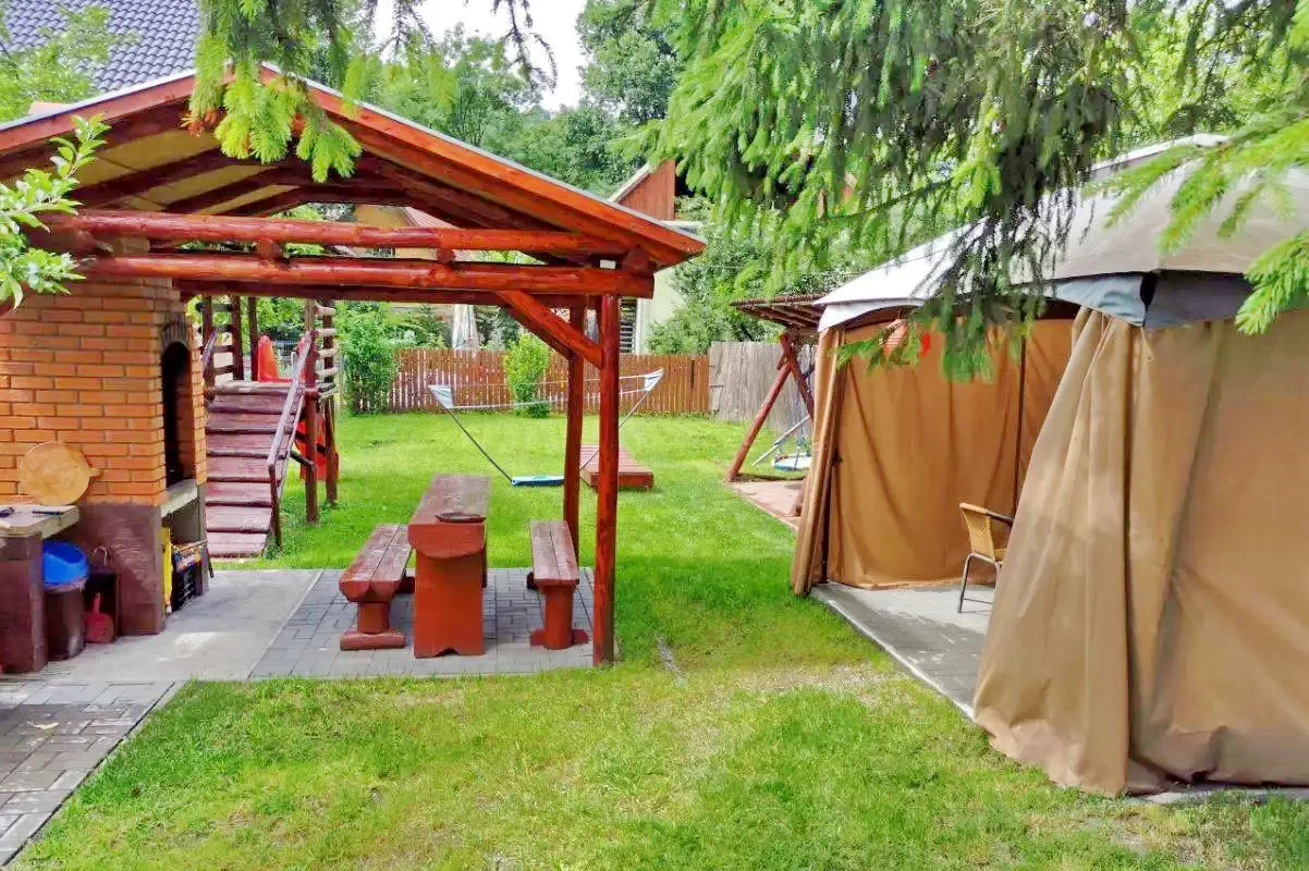 - Az étkező, nappali, a tágas és parkosított udvar - pavilonnal, grill, bogrács lehetőséggel, gyermekek számára kialakított játszótérrel, valamint térfigyelő kamerákkal őrzött parkolóval a gyerekes családok, fiatal párok, illetve baráti társaságok kedvenc tartózkodási helye.