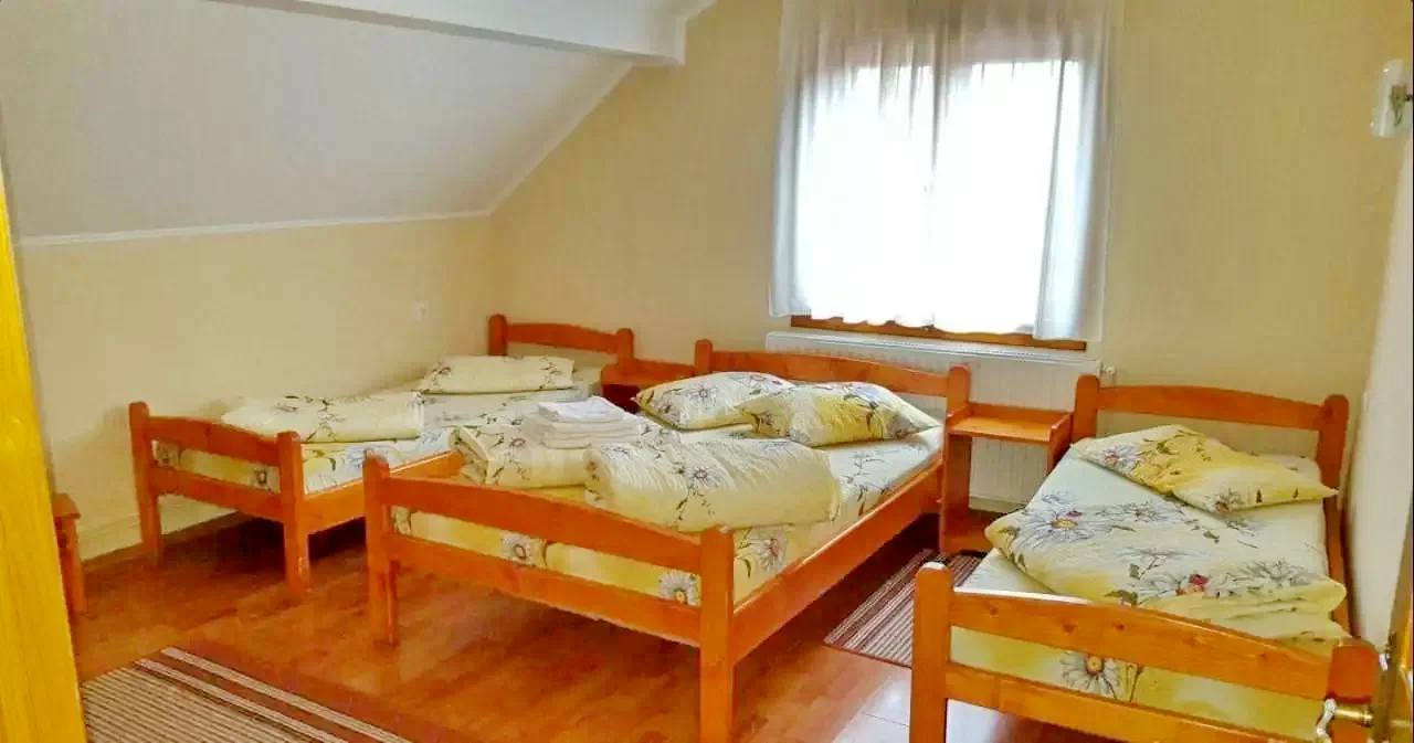 - 5–6. szoba: Négyszemélyes szobák, saját fürdőszobával (folyosón), TV-vel, internettel.