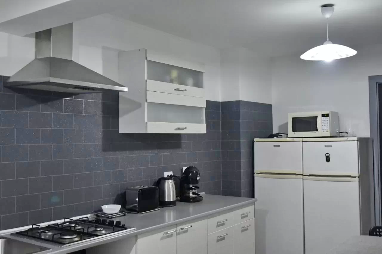 Modern és felszerelt konyhával, valamint étkező-nappali lehetőséggel rendelkezik.