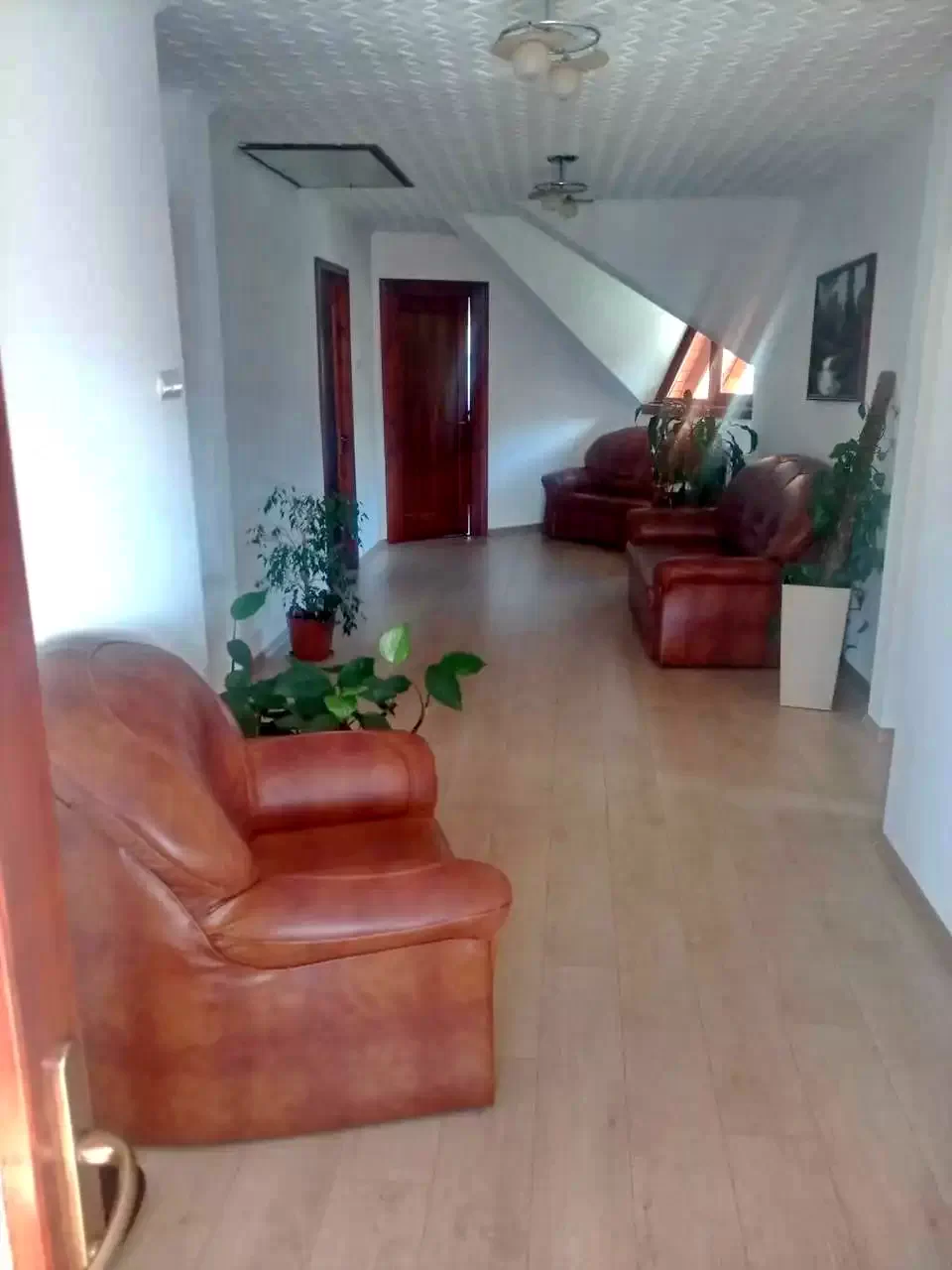 - Mindkét épülethez tartozik egy külön bejáratú nagy terem, amely fűtött (évközben nagy dupla garázsként működik). Itt van három db. 2m hosszú asztal padokkal, tűzhellyel, egy mosogatóval (hideg, meleg víz), úgy kialakítva hogy alkalmassá válik egy 16 fős csoport számára különbféle ünnepélyek megülésére (szilveszter, karácsony, húsvét, stb.).