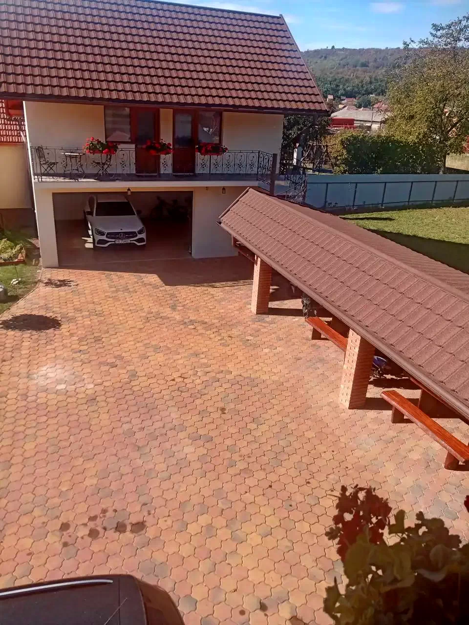 • Az udvaron két fillegória is van, hinta, egy felnőtteknek és kettő gyermekeknek, asztalitenisz, nyugágy, trambulinok, homokos játszótér és úszómedence.