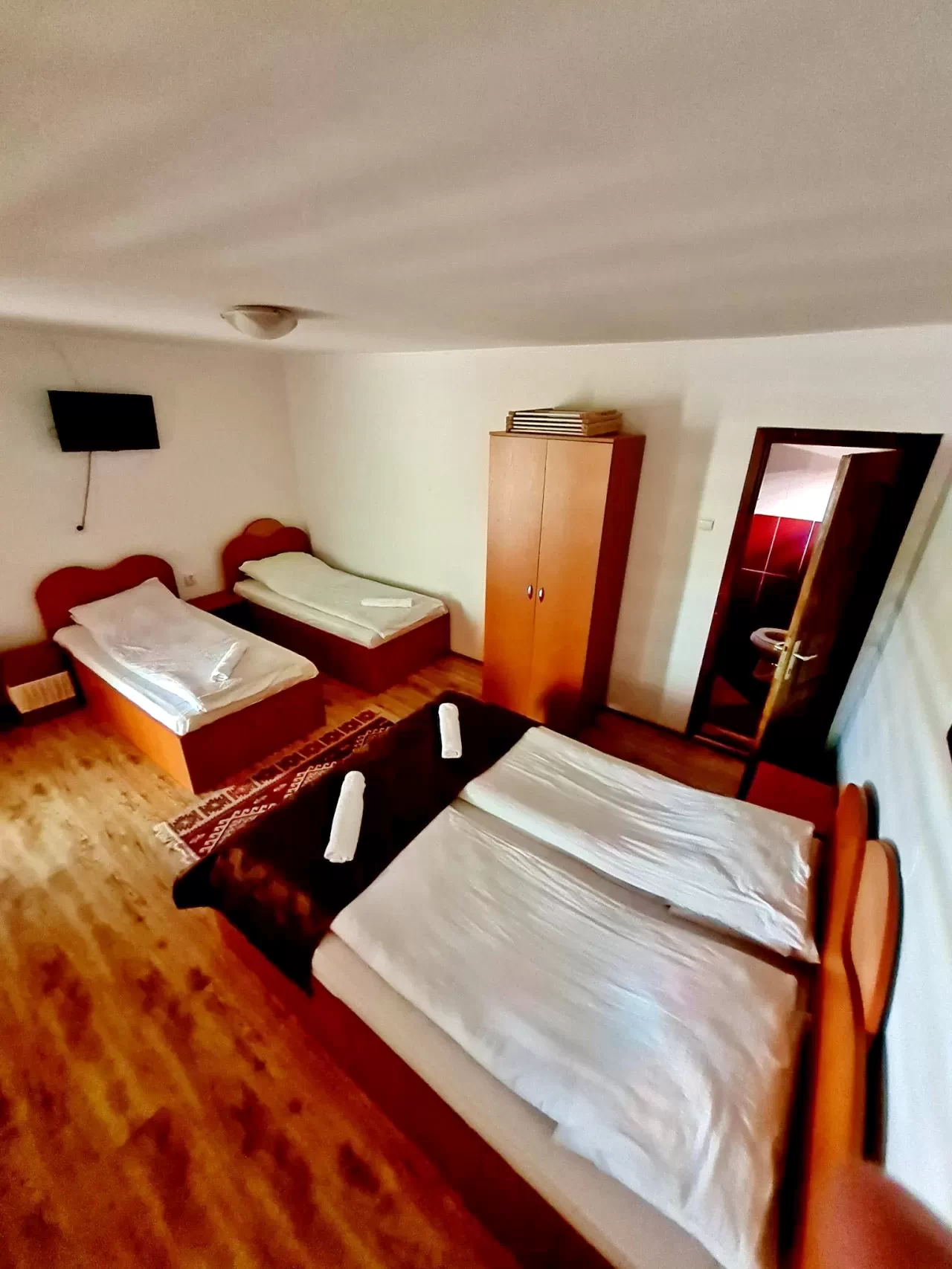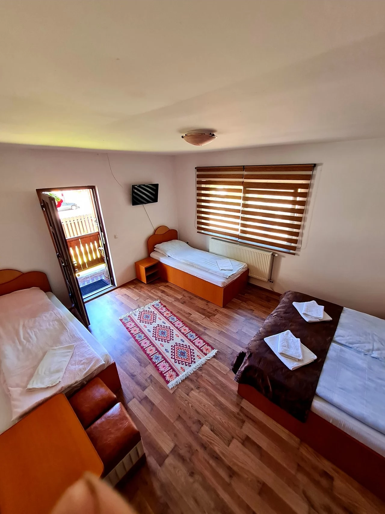 - 4-es számú szoba: 1 db franciaágy + 2 db egyszemélyes ágy, fürdőszoba