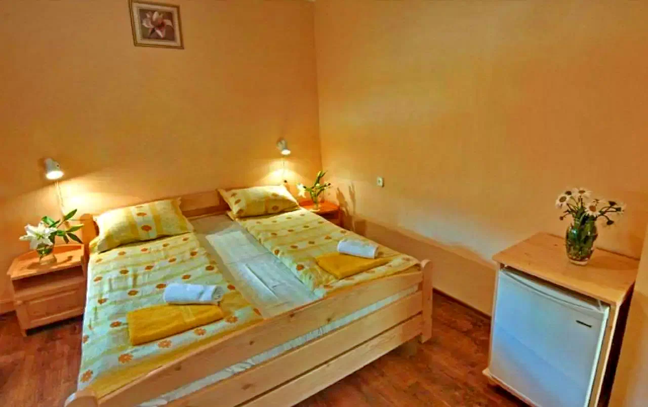 - A panzióban 14 szobában 37 férőhely, mig a kertjében található 5 db kétszobás saját belső fürdőszobás, 3 csillag minősítéső kisházában 20 férőhely.