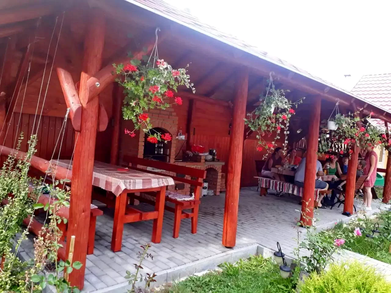 A tágas és parkosított udvarában födött kiülő, tüzrakóhely (grill, bogrács), játszótér, illetve zárt parkolóval szolgál.