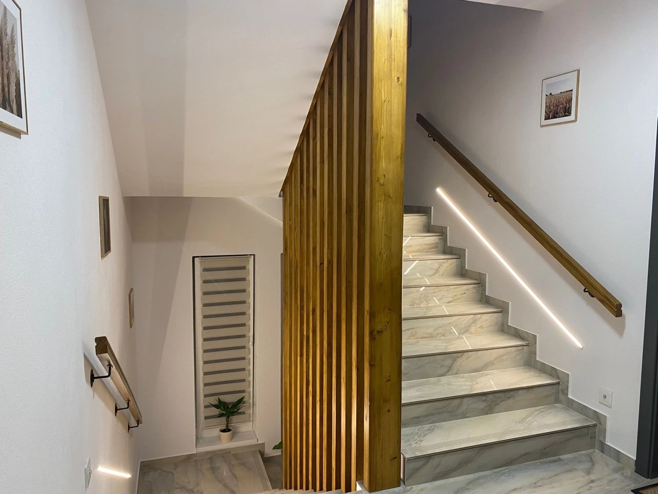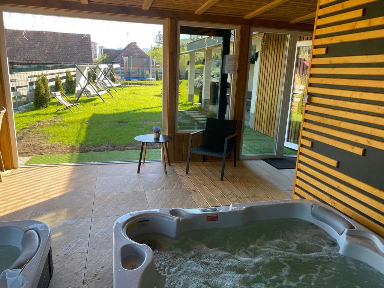 - Az alsó szinten helyezkedik el a wellness zóna szaunával, sószobával és két jacuzzival.