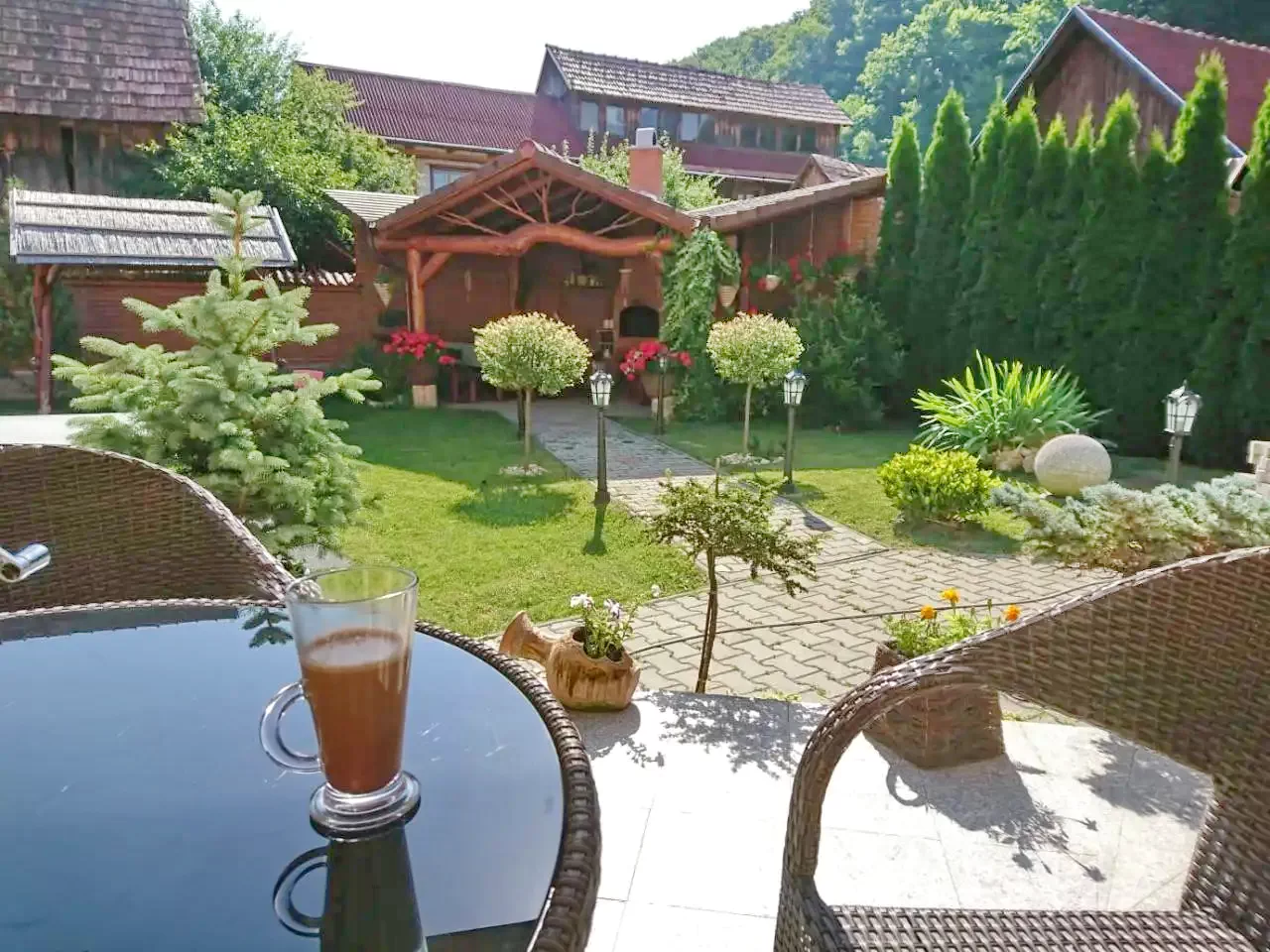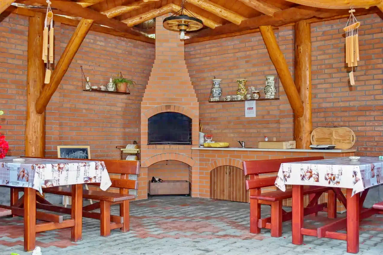 - Parkosított kerttel, benn pavilonnal, sütőkenecével, grill-bogrács lehetőséggel, játszótérrel, trambulinnal, hintával, csúszdával, valamint a vendégház udvarán parkolási lehetőséggel szolgál.