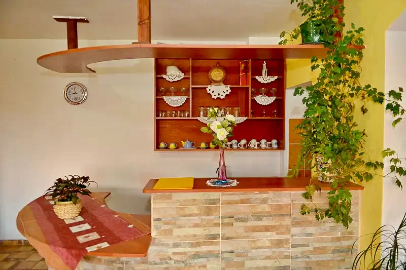 - A panzió egy 28 m²-es, teljesen felszerelt közös konyhával és tágas étkezővel rendelkezik.