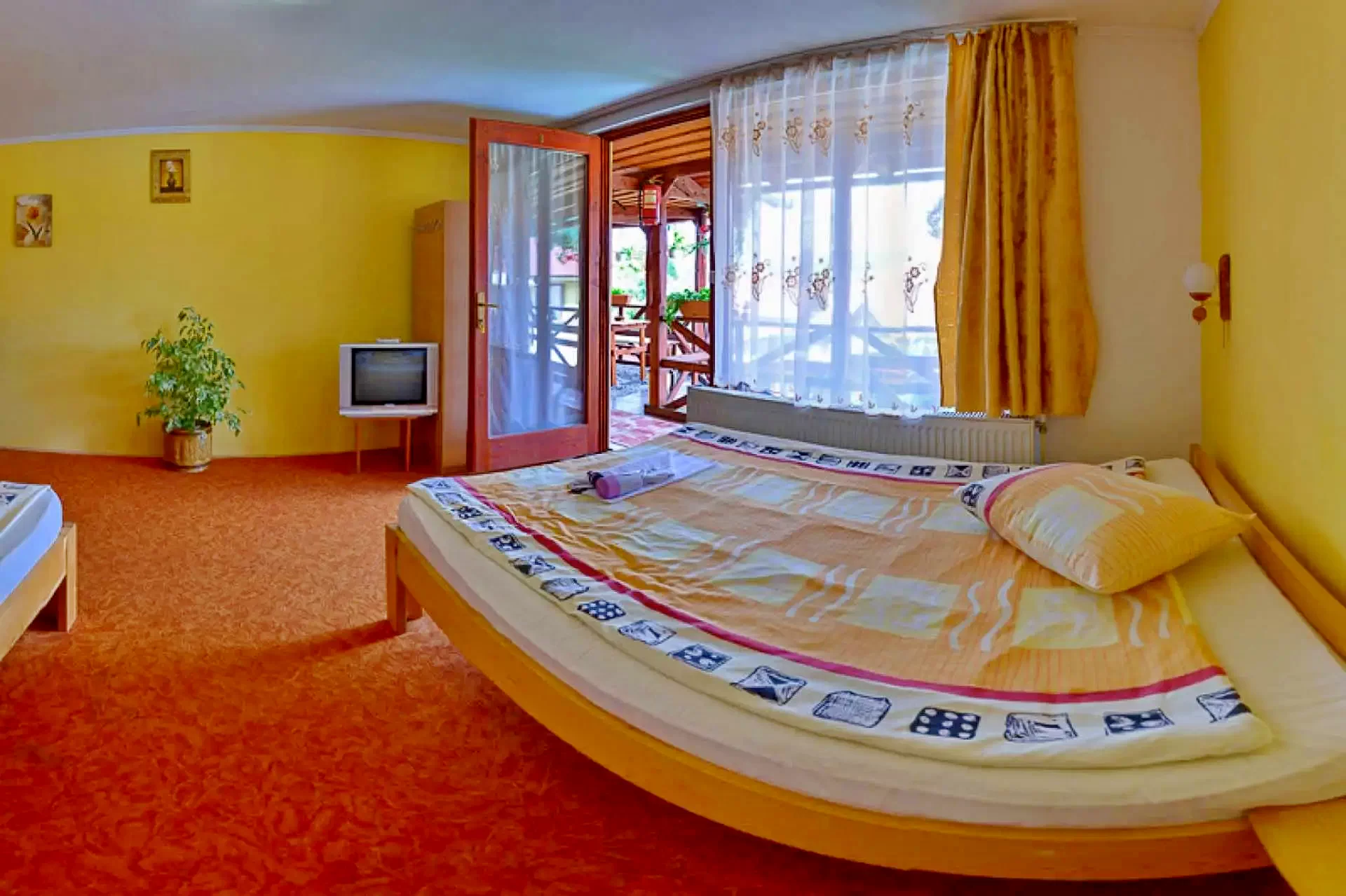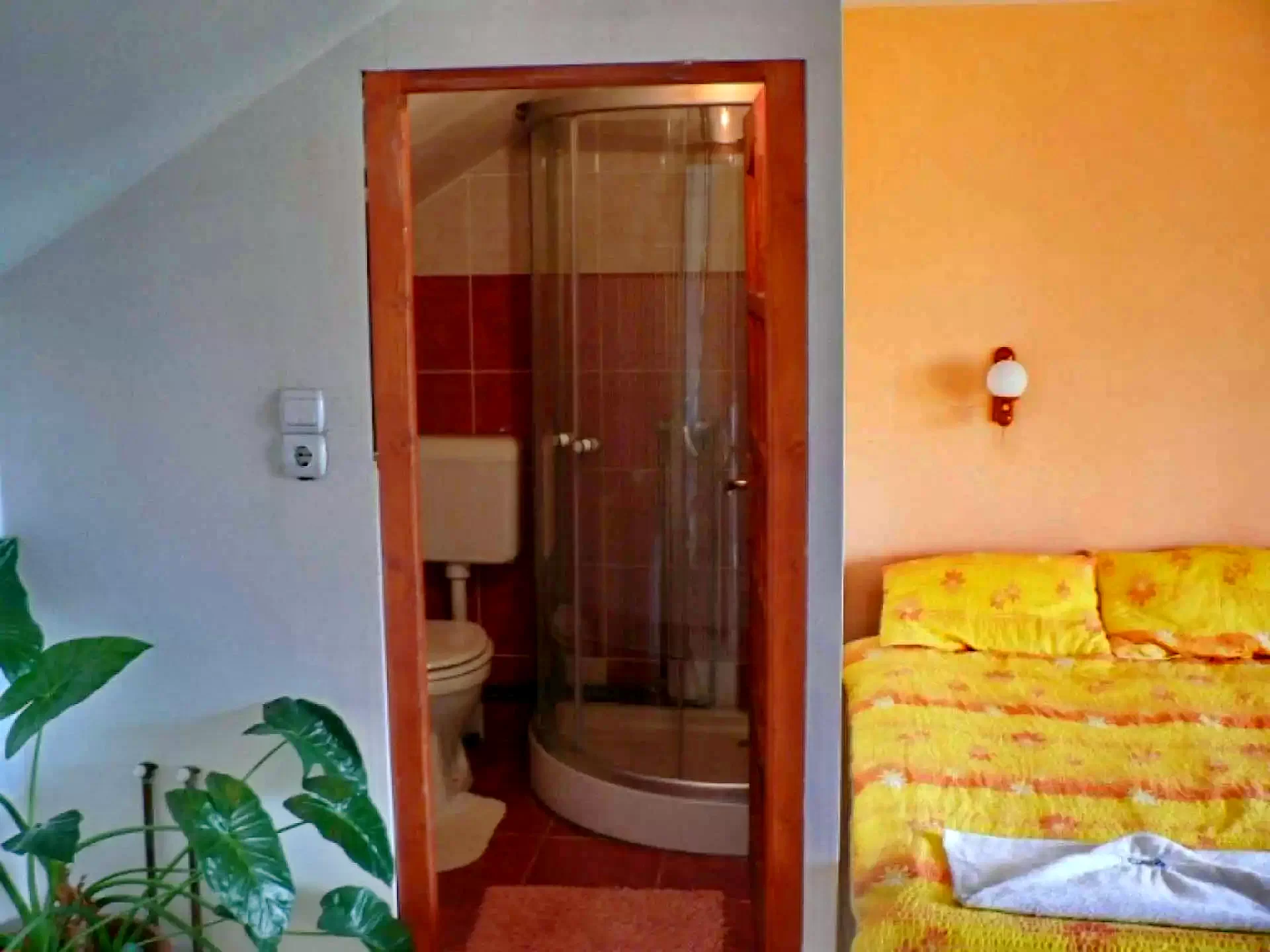 - 1 db 3 fős szoba 1 db franciaágy, 1 db egyszemélyes ágy, saját fürdőszoba.